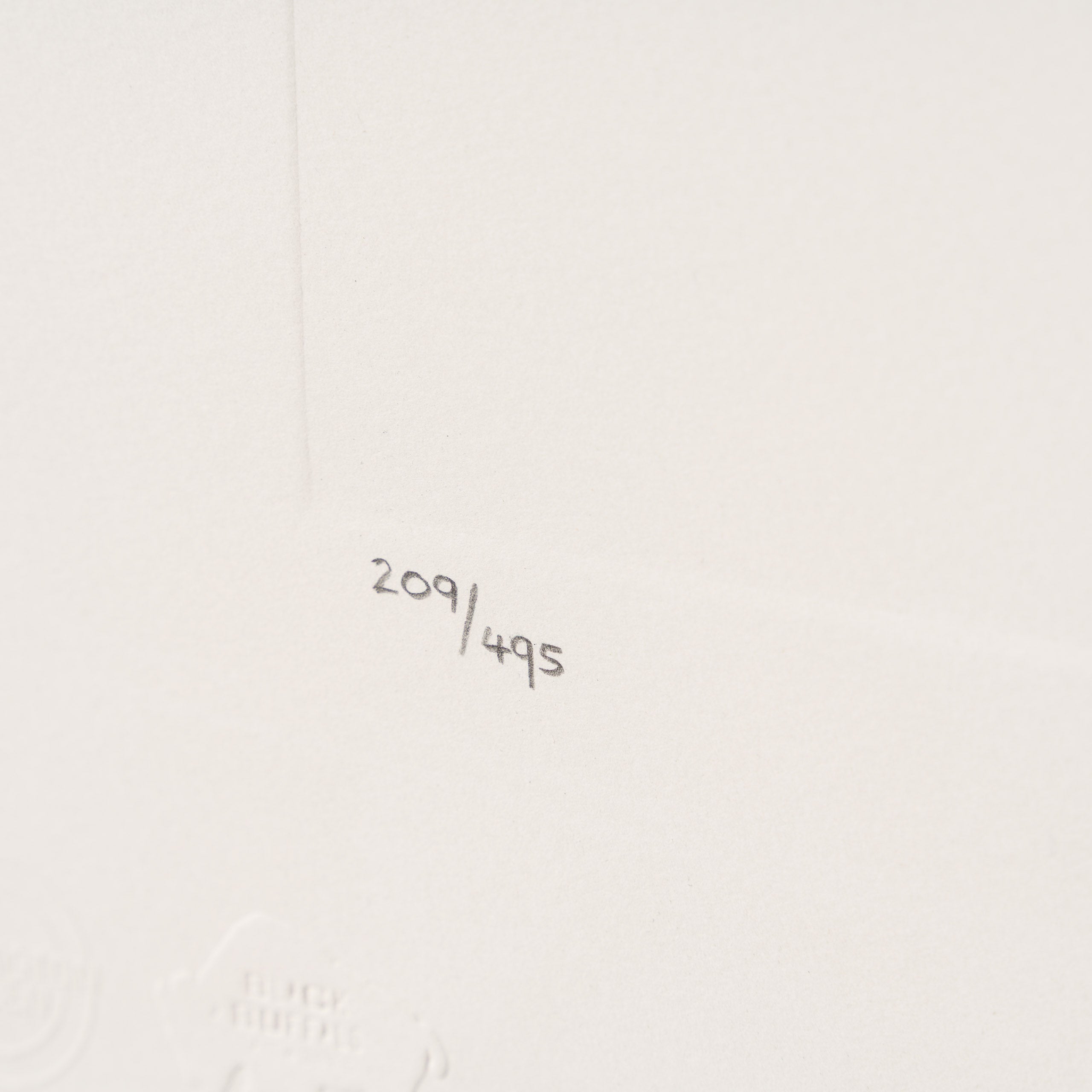 Printed from these original artworks onto 300gsm Somerset silk stock, each of our limited editions is float mounted to retain the deckle-edge finish and hand-signed by the artist. The impression of a plate mark and embossed logo on each piece are the finishing touches to Dylan’s instantly-recognisable aesthetic.