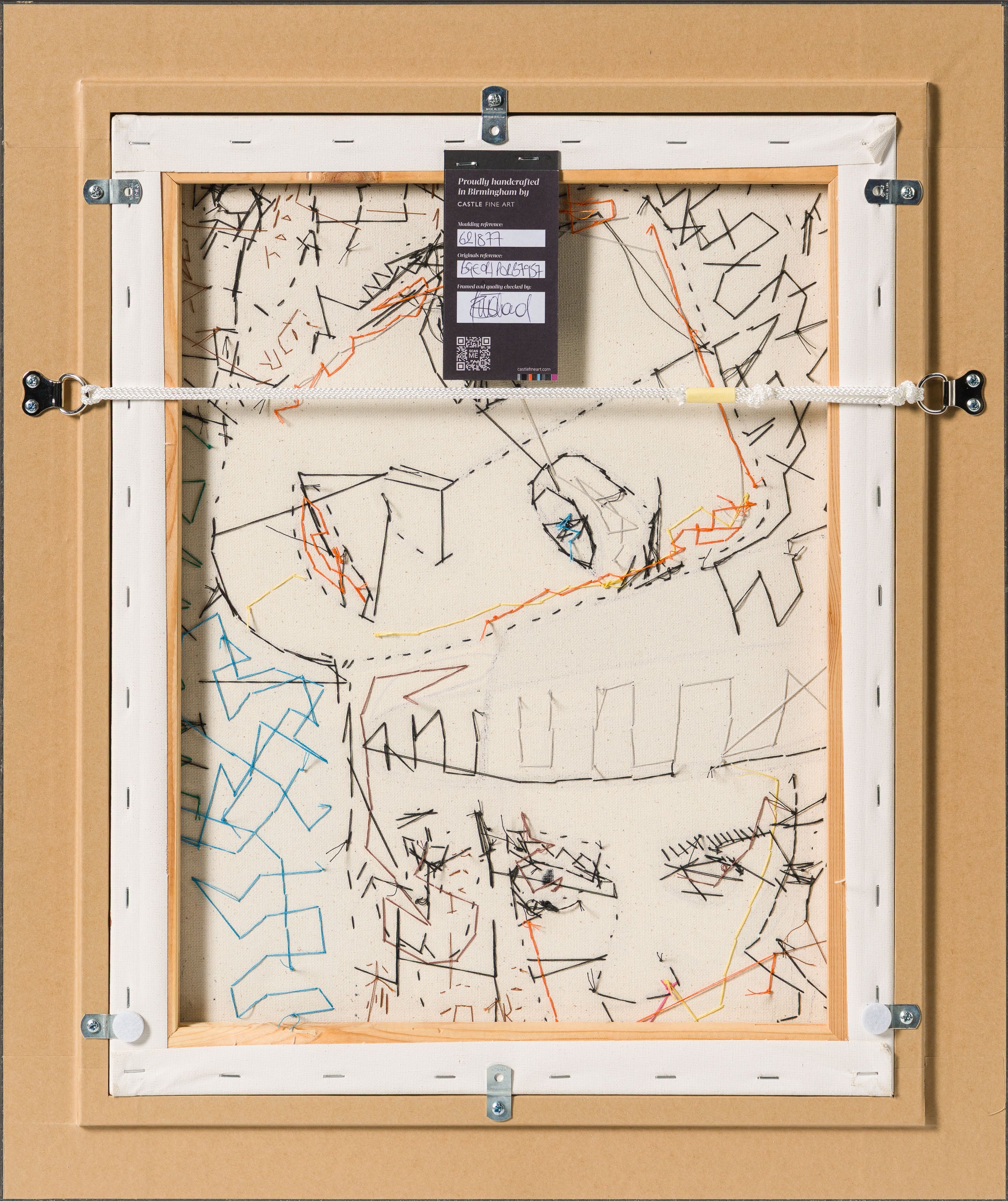 This piece is hand framed with a bespoke design, created especially to complement the features of the artwork. In the words of Boy George, “Stephen Lynard – fashion designer, comedian, beautiful soul. Gone but never forgotten. Painted from a picture taken at The Blitz club in the late 70s. Stephen dressed like a priest and me with my face painted yellow. Why not?”