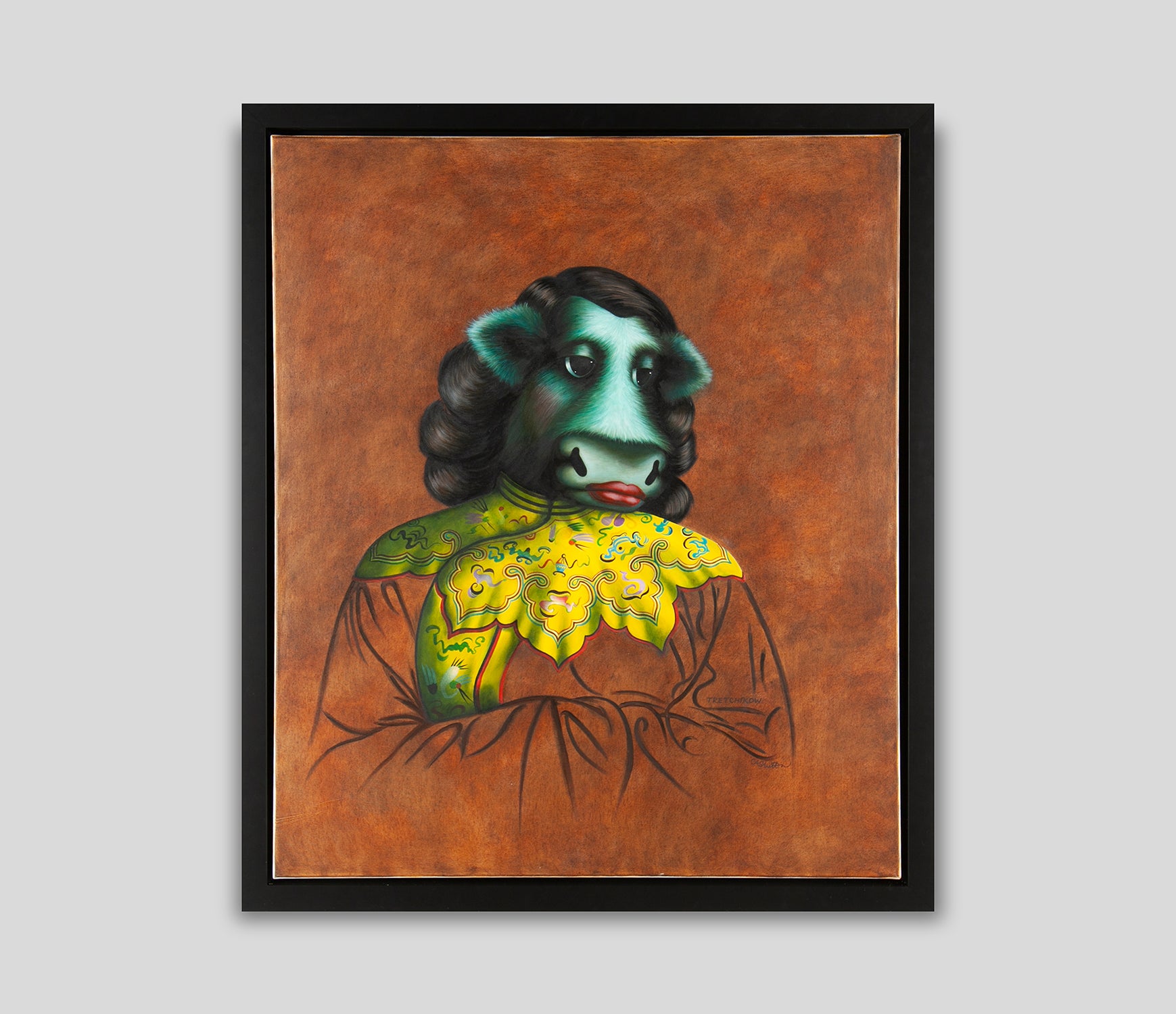 Beautiful and bonkers, this original artwork by Caroline Shotton is the prefect way to add a seemingly classical portrait to your wall which is also udderly hilarious.