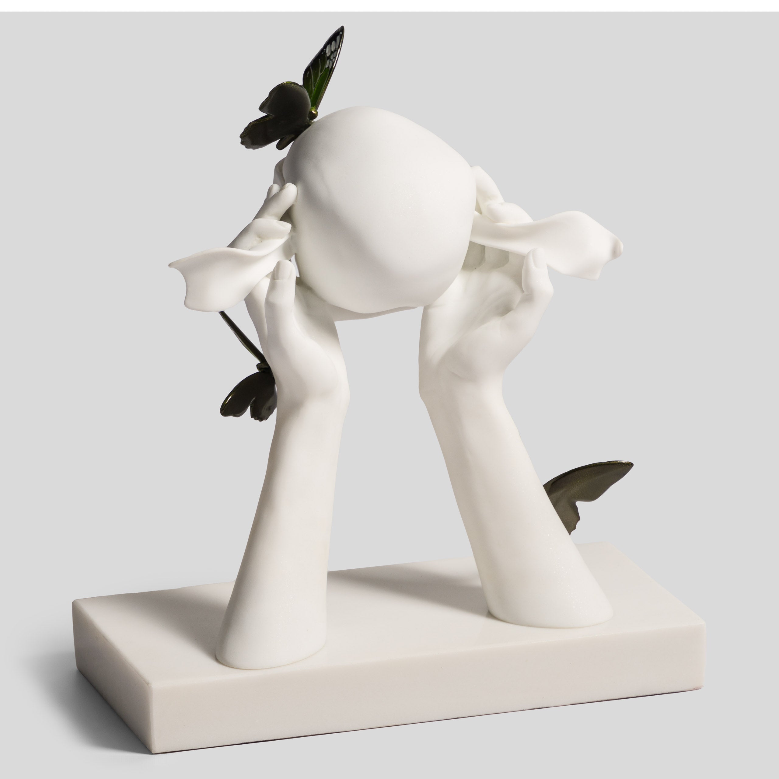 Nature also influences Dan's art, with many pieces featuring flowers, insects, and birds. For his original 3D sculptures, Dan experiments with colours, finishes and textures. These include crushed glass, gold and silver leaf, marble, bronze, and glass diamonds.
