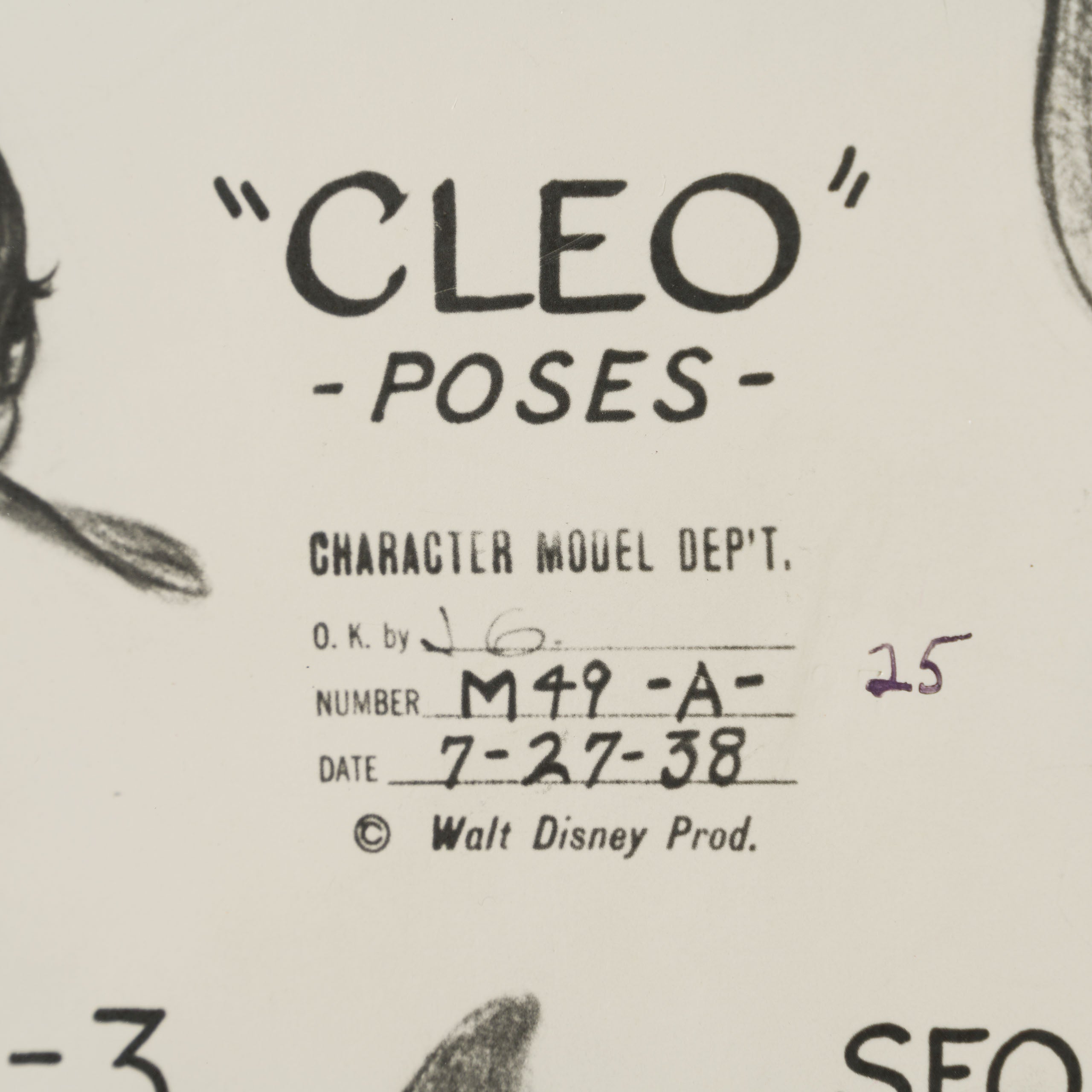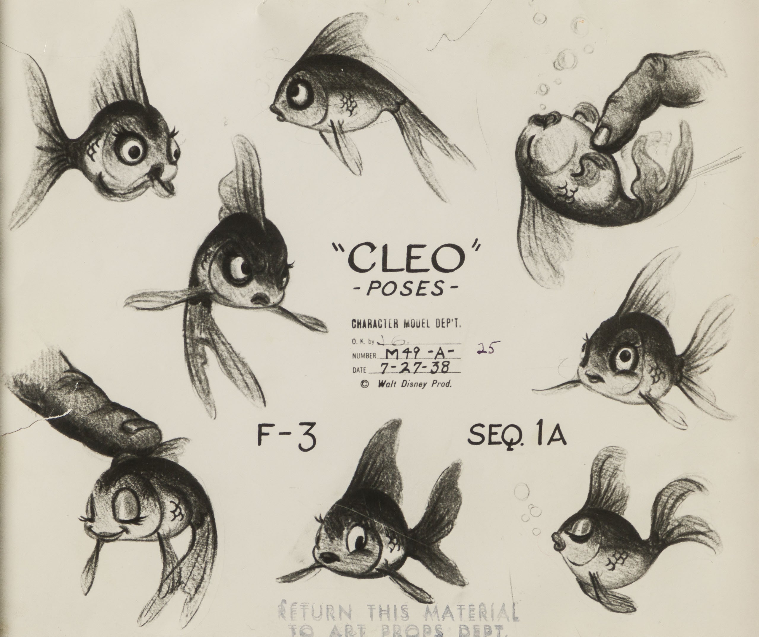 This authentic model sheet from the film's production would have been used by animators at Walt Disney Studios for the character of Cleo.
