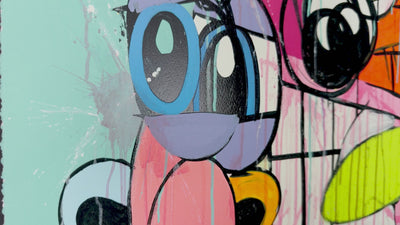 Described as Francis Bacon meets Disney', the series of artworks merged deep themes of human condition and humanistic anguish, whilst combining the light heartedness and comedic value of animation. The original paintings depicted distorted and anguished human figures conveying a sense of existential torment and psychological depth.