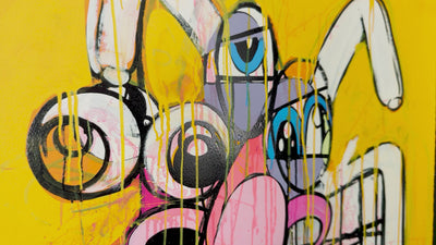 Described as Francis Bacon meets Disney', the series of artworks merged deep themes of human condition and humanistic anguish, whilst combining the light heartedness and comedic value of animation. The original paintings depicted distorted and anguished human figures conveying a sense of existential torment and psychological depth.