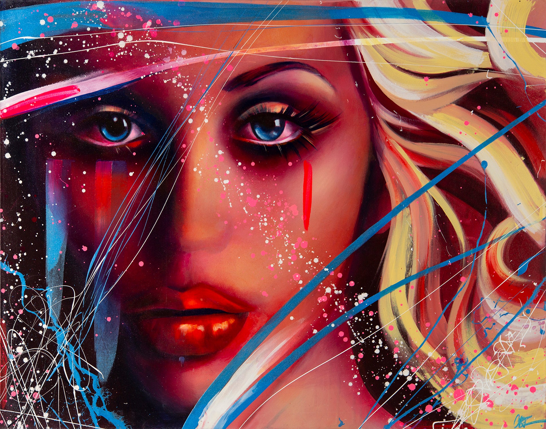 This original artwork by Emma Grzonkowski showcases her unique, bold and impulsive style whereby she creates beautifully detailed portraits while also throwing and flicking the paint onto the canvas which creates a beautiful contrast of movement and rhythm. Drawing inspiration for her art from a range of experiences and emotions, she explains: "In a world where 'perfection' is prized, I have shown something raw and real. I hope people can relate to these triumphs and tribulations and feel empowered. I want to show that it is okay to have scars and wounds...they are reminders of the battles we've all fought and won."