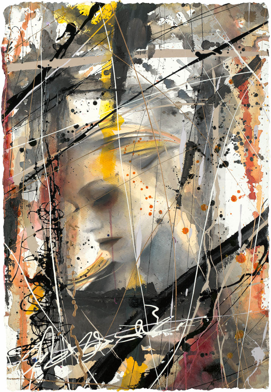 Emma Grzonkowski worked on this piece and Veiled at the same time, almost as if they were a mirror image. The faces look peaceful, yet the abstract forms that surround them express chaotic mindset.