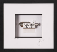 Depicting a worker standing on top of a toilet roll, carefully painting the phrase “F*** This S***” onto a sign, ‘Found Wisdom’ humorously uses a miniature figure and an everyday object to comment on the world around us. Funny at first glance, the seriousness of the figure's task contrasts with the absurd setting and the blunt message - creating a moment of unexpected comedy. Intentionally ambiguous, the phrase itself is not directed at anything – could be a reaction to global events, social pressures, politics or everyday stress – leaving us to interpret it in our own way and connect it to our own personal experiences. With this, Joly achieves a perfect balance between humour and honesty, capturing a feeling of frustration using comedy to keep the message playful rather than cynical.