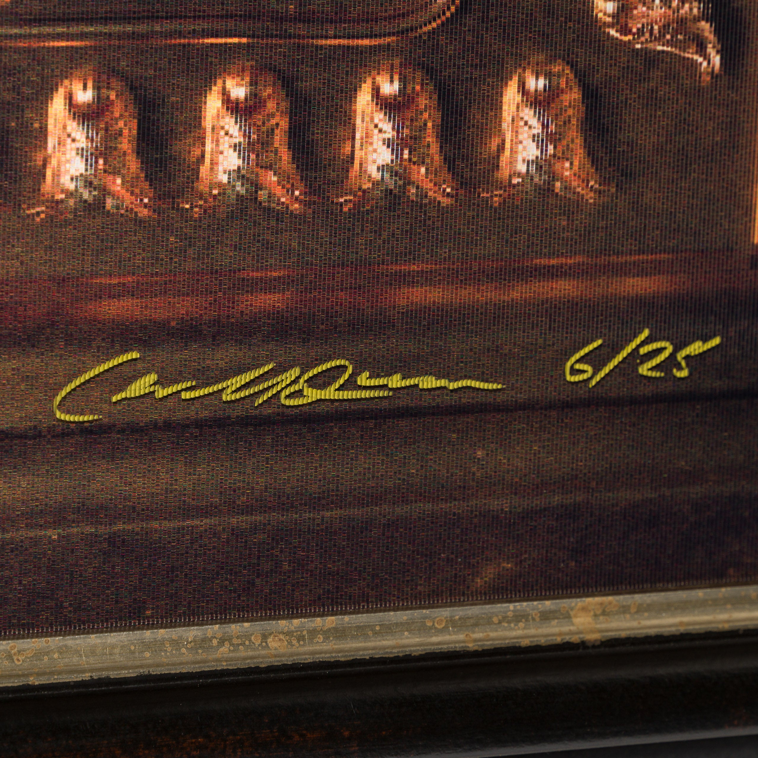 Offering the viewer two images in one depending on the view angle, his contemporary lenticular designs allow McQueen to capture more than one thematic narrative in a single artwork.