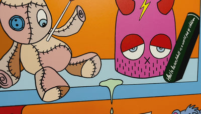 The skull, the egg, the leading femme fatale; all familiar iconography seen throughout art history, from the old masters to contemporary pop art, but Graceland London uses them differently. While whole eggs have traditionally been featured to represent optimism and new life, Graceland London inverts this tradition by presenting surrealist-style fried eggs with golden yellow or acid green yolks as a poignant metaphor for how identities and perceptions are moulded by society’s expectations and norms.