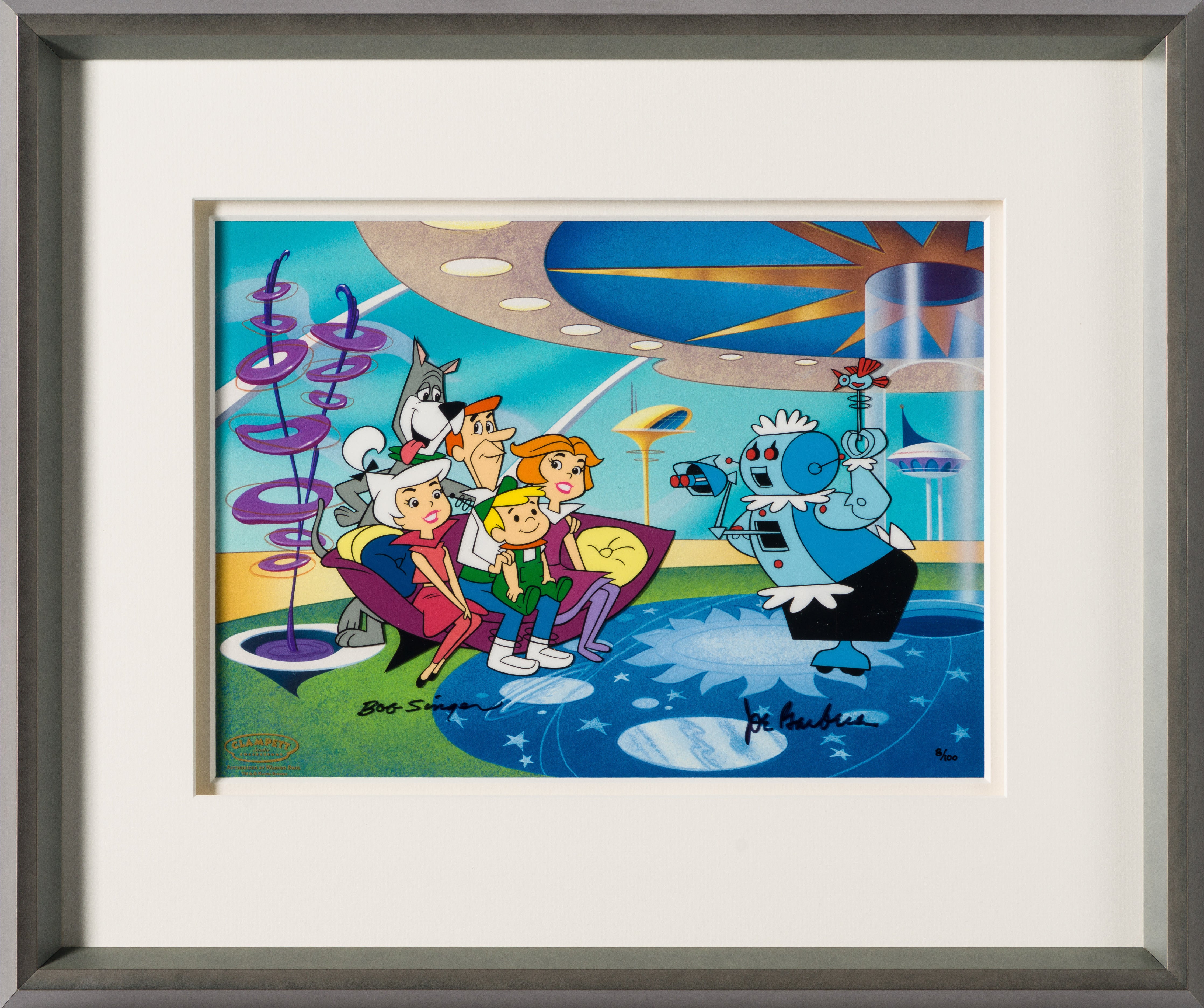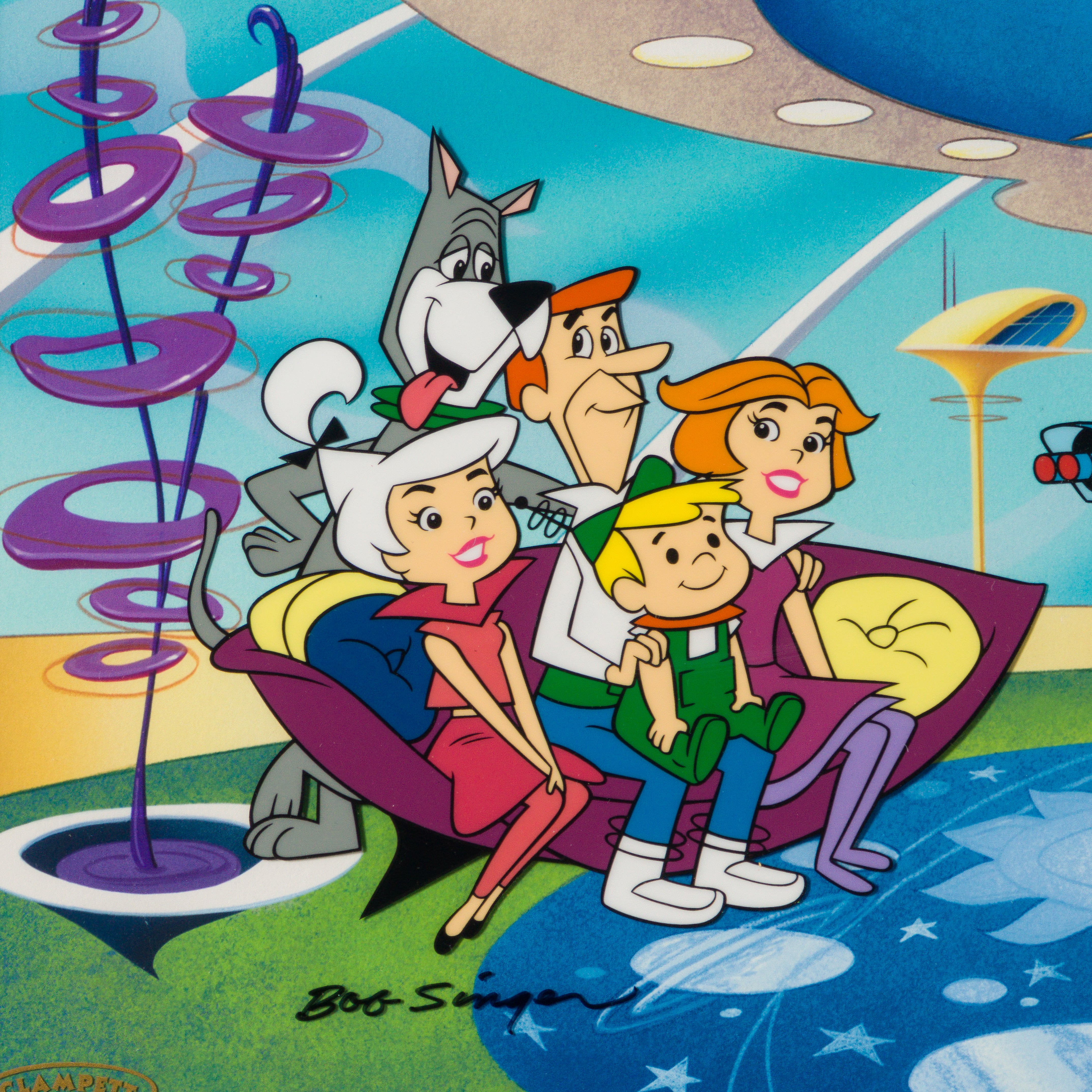 Originally released in 2003, the dynamic artwork illustrates the central characters of The Jetsons, including George, Judy, Elroy and Jane Jetson, along with Astro the dog and Rosie the robotic housekeeper. It is taken from an original drawing by the renowned Hanna-Barbera animator, Bob Singer.