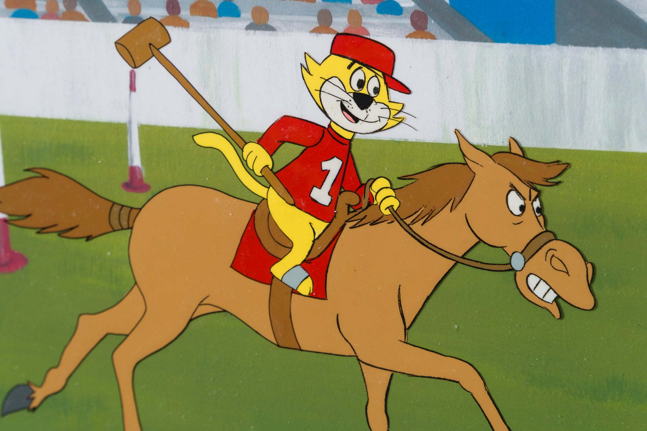 The most effect-ual Top Cat is showcased here on this iconic original production cel. First airing between 1961-1962, the success of Top Cat meant that this cheeky cartoon character and his gang of Manhattan cats were rerun and revisited many times. These included: four other TV shows, four films, and six cameo appearances such as The Powerpuff Girls (2000).