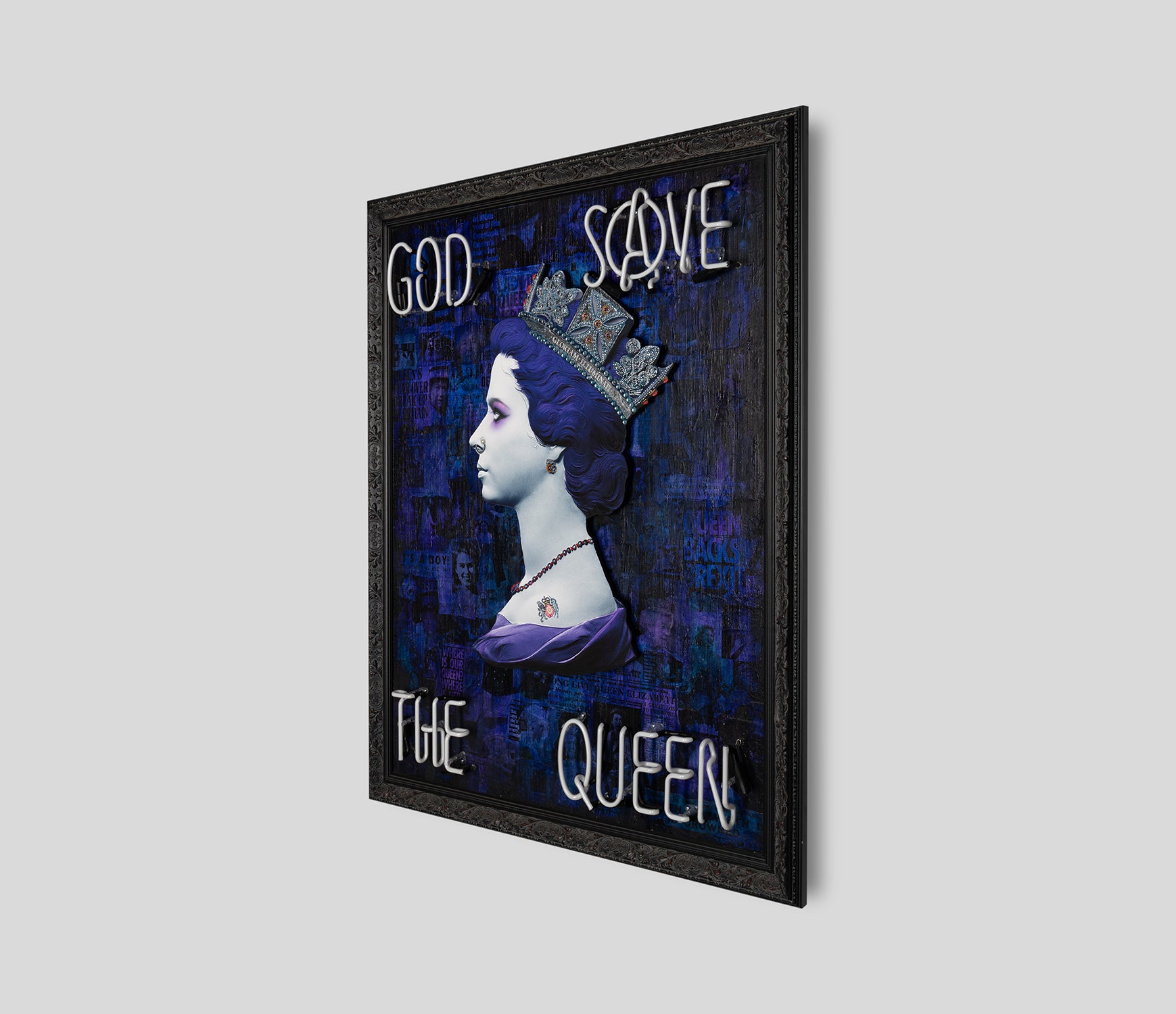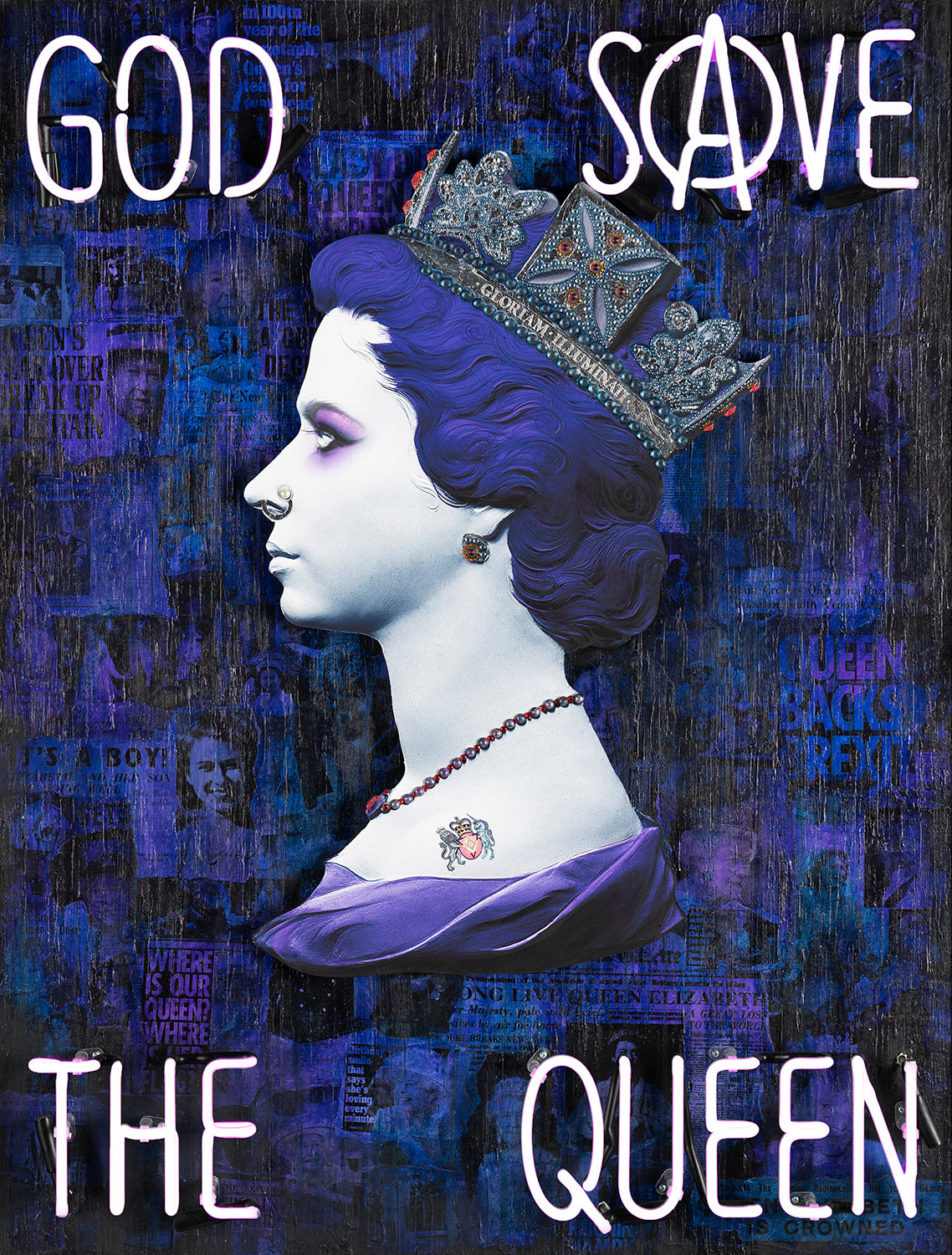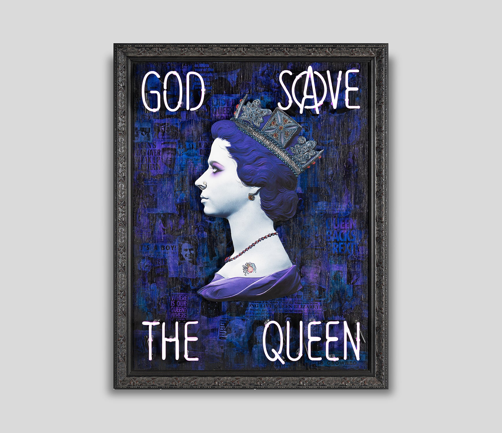 Collected by celebrities including Sir Elton John, Sting and Boy George, Mark Sloper - known as Illuminati Neon - moves in the same circles as some of showbiz's best-known names. His latest release, Elizabeth, celebrates Queen Elizabeth II's strength, beauty and 70 years of dedicated duty to our nation through his incredible hand-embellished portrait, using signature punky Illuminati Neon features.