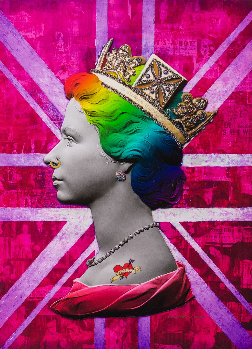Collected by celebrities including Sir Elton John, Sting and Boy George, Mark Sloper - known as Illuminati Neon - moves in the same circles as some of showbiz's best-known names. His latest release, Elizabeth, celebrates Queen Elizabeth II's strength, beauty and 70 years of dedicated duty to our nation through his incredible hand-embellished portrait, using signature punky Illuminati Neon features.