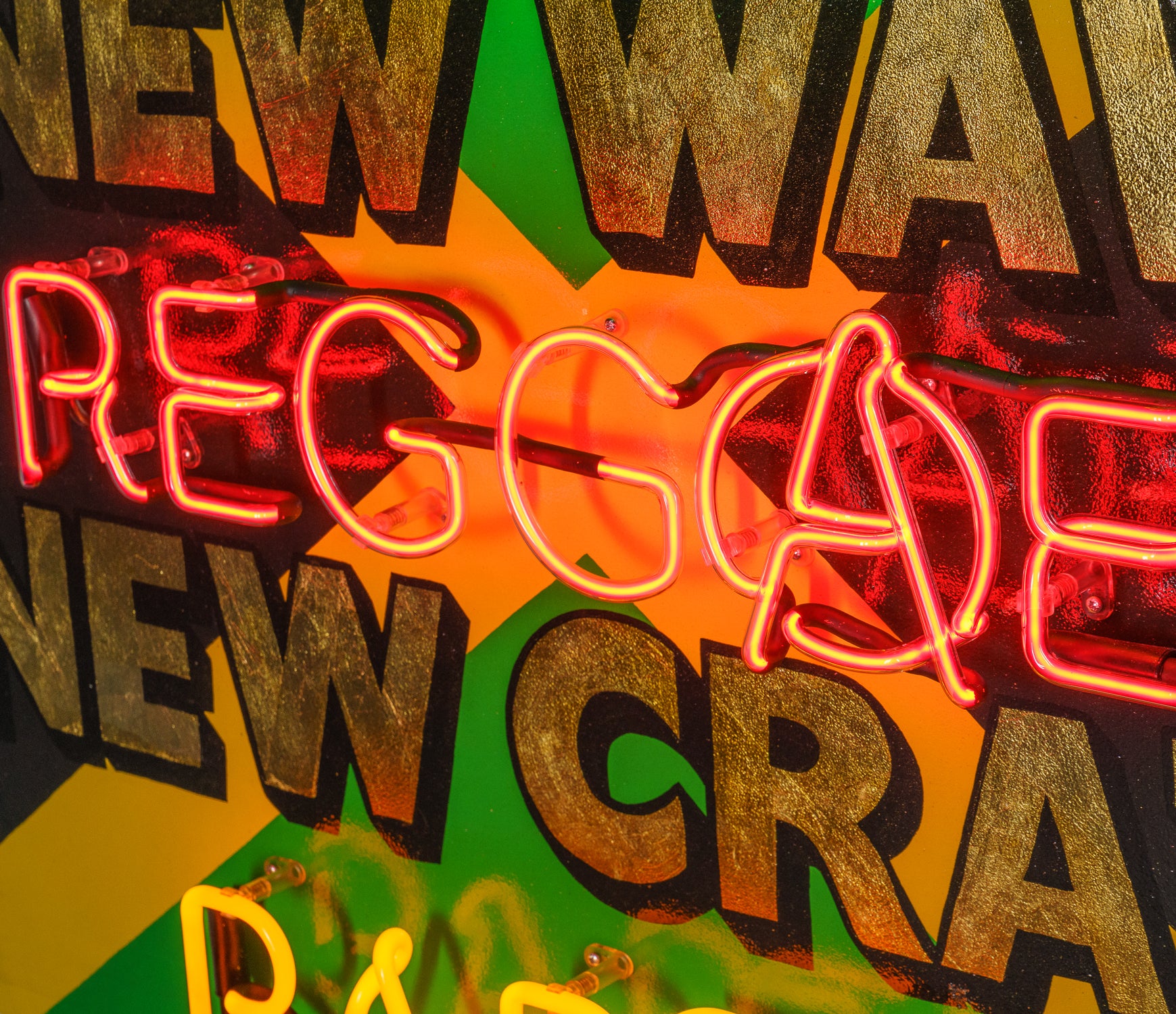 Bob Marley's time living in the UK, particularly Notting Hill, coincided with the emergence of the punk movement in the 1970s. This electrifying original artwork by Mark Sloper represents the unique convergence of Rastafarians and Punk Rockers during this time. Bold, bright and bonkers, the punk artist combines his many years working in the film and music industry with his expertise in the field of neon gas.