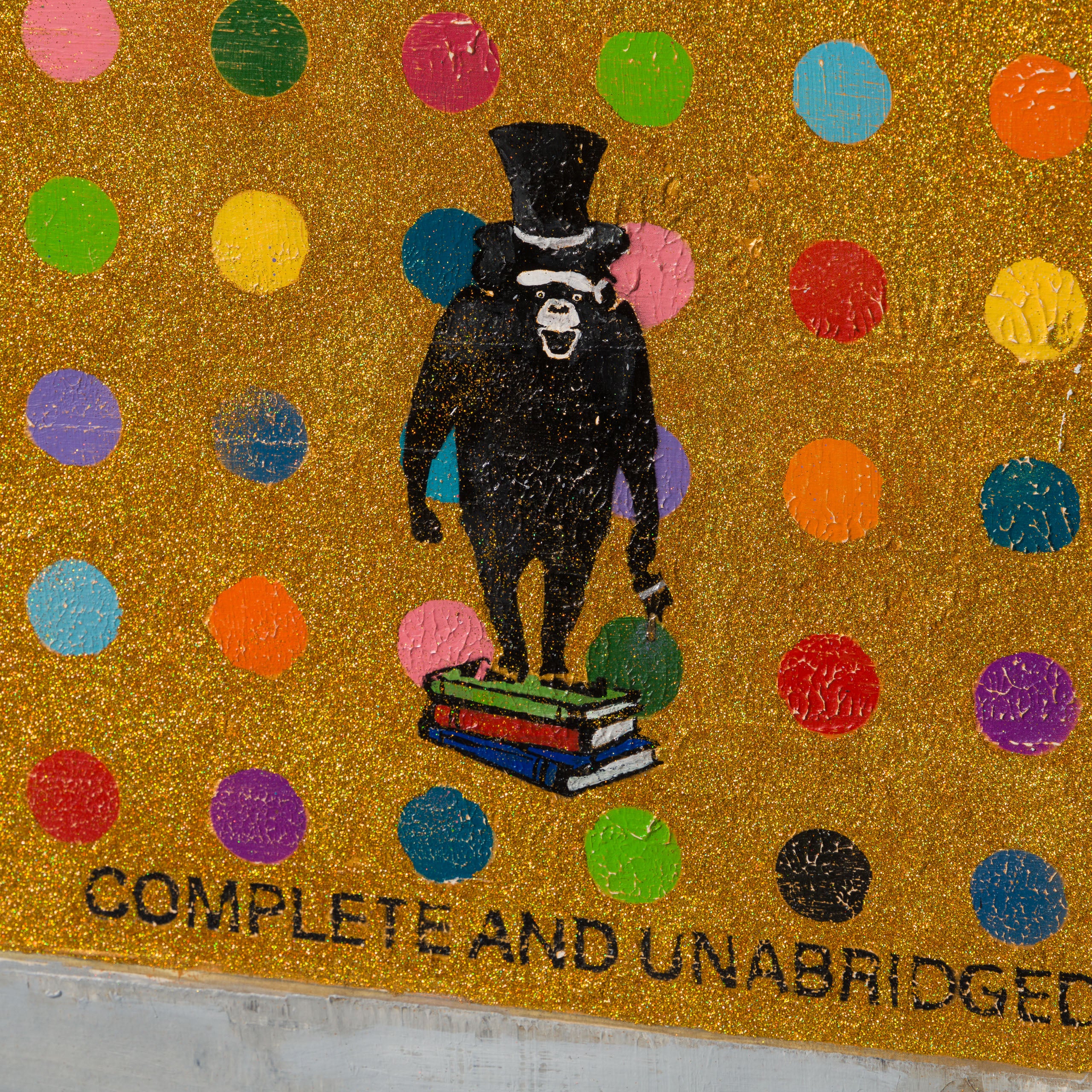 James McQueen’s complex application of paint elevates his art beyond the mere imitation of a nostalgic object towards an art that is rich and expressive, exploring themes of Pop art and abstraction. Working under a pseudonym, he introduces an autobiographical dimension to the work with his trademark monkey, using this mischievous character as a kind of personal insignia.