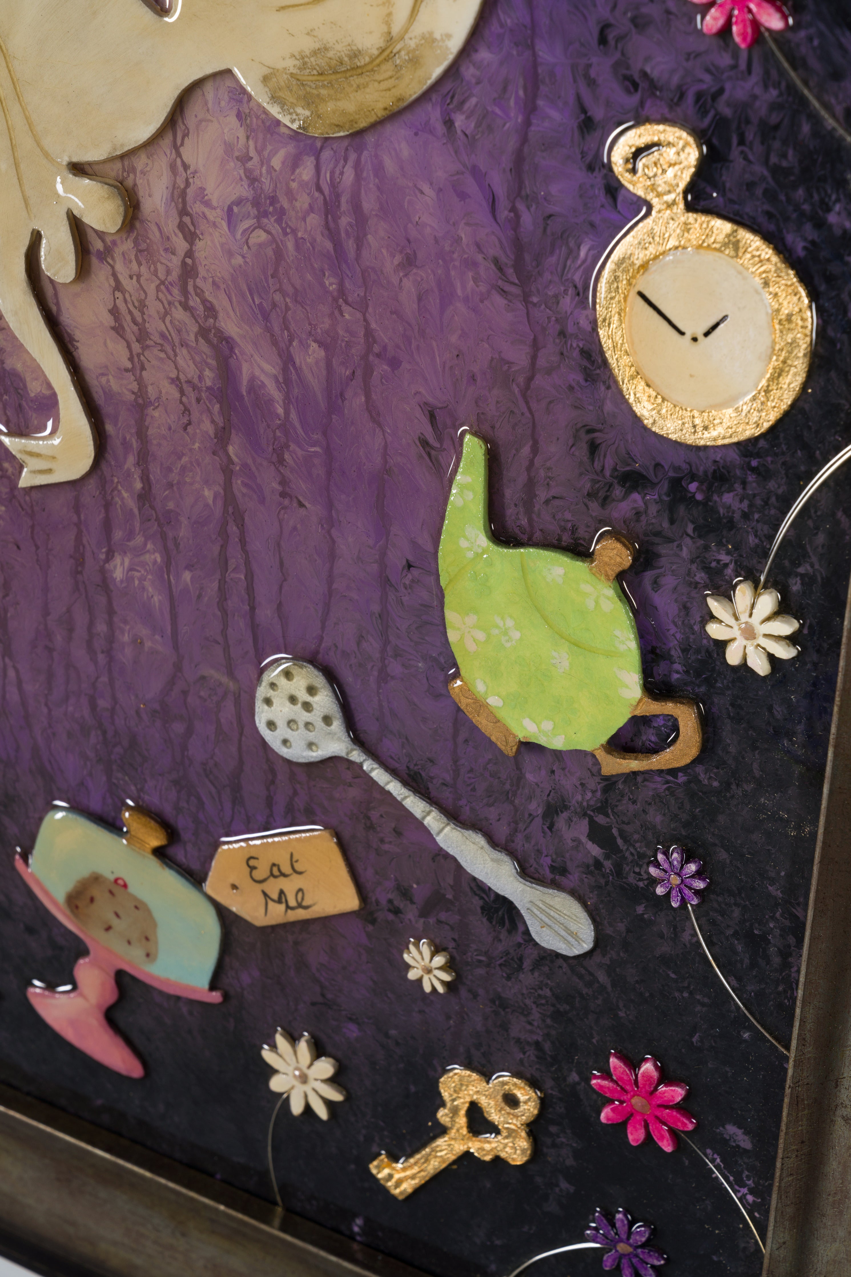 This original artwork by Jayne Smith incorporates a range of beautiful artistic materials including clay, fabric and gold leaf. The effect of adding these elements on top of a glossy resin surface is that of a sculptural relief which is a technique used as far back as Ancient Greece and popularised in 19th century America on momentous government buildings.