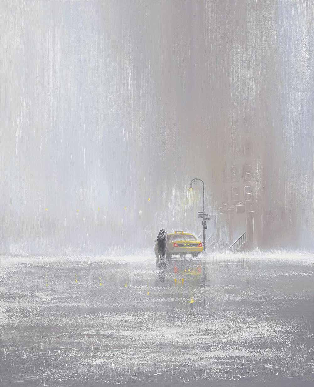 Known for his rain-soaked oil paintings during a career than spanned over 30 years, Jeff combined a romantic 1950s feel with his signature rain motif. The anonymous kissing couple in his artworks represents a feeling of togetherness.