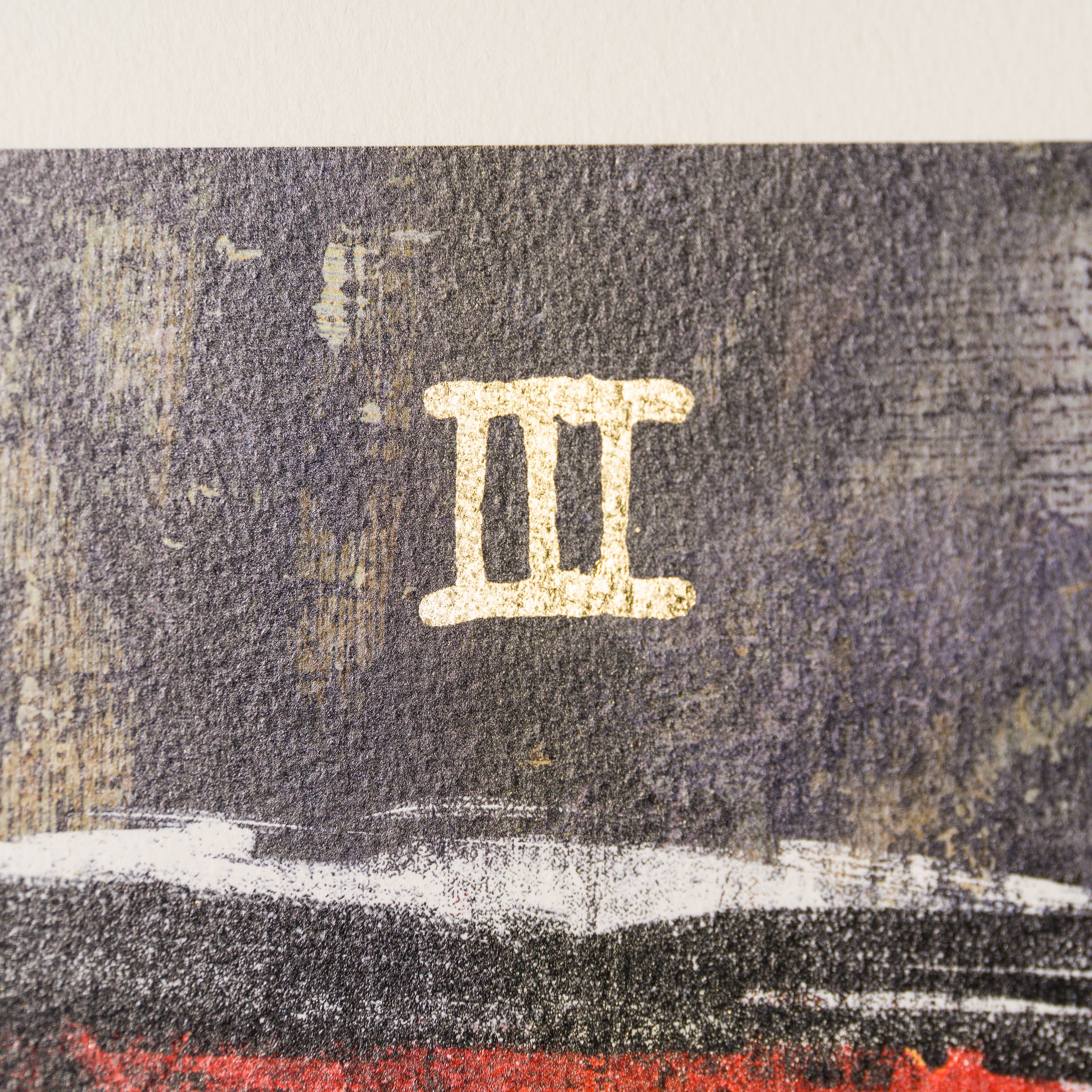 This artwork is Silkscreen and Archival Pigment on 640gsm Waterford paper. With hand deckled edged paper, the artwork is illuminated and gilded with decorative 24ct gold leaf.
