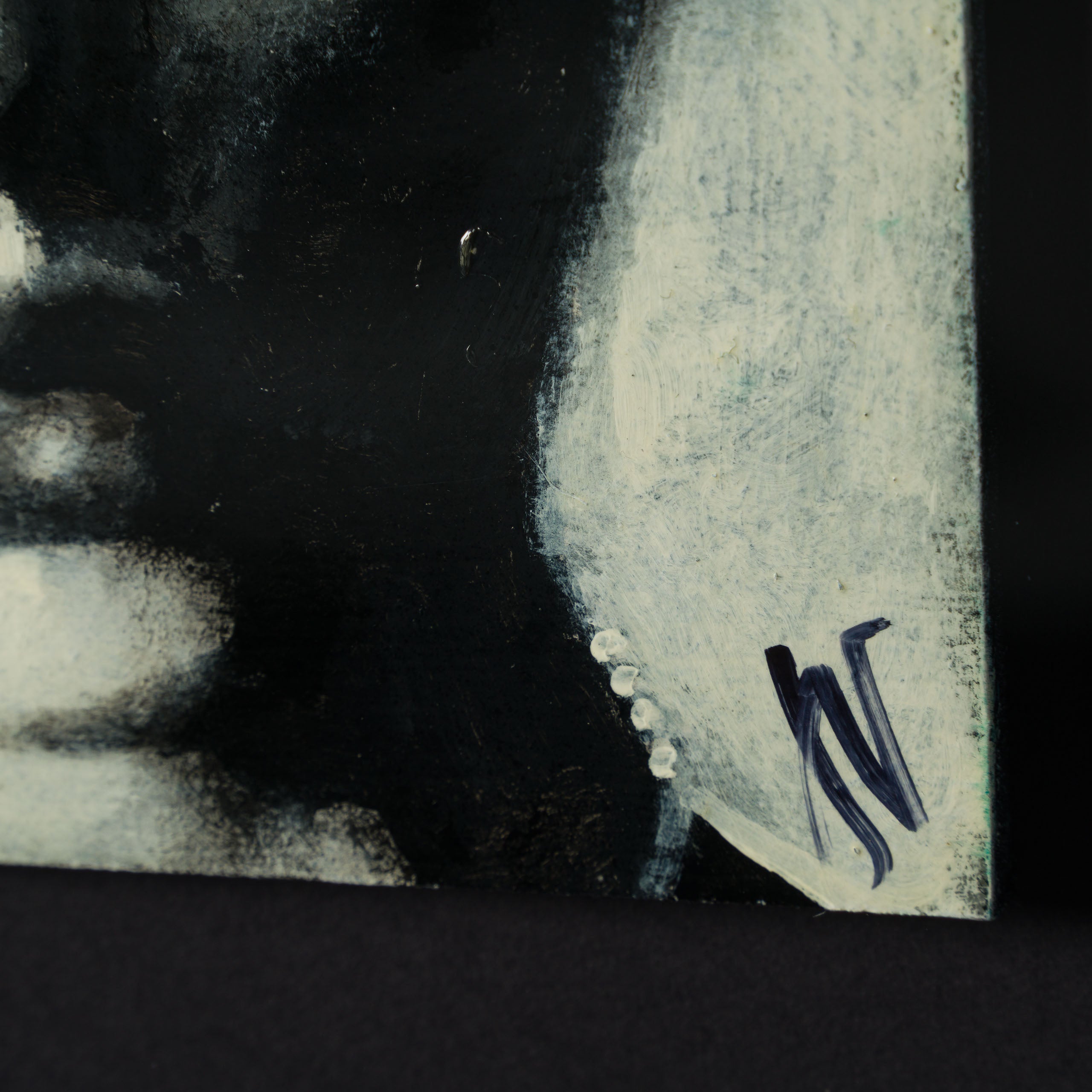 Using conflicting tones of cream white, black and grey to create a highly atmospheric figurative artwork with an essence of realism capturing a monochrome scene. The deep swathes of black paint are skilfully blended and contrasted with white accents to create detailed and moving masterpieces.