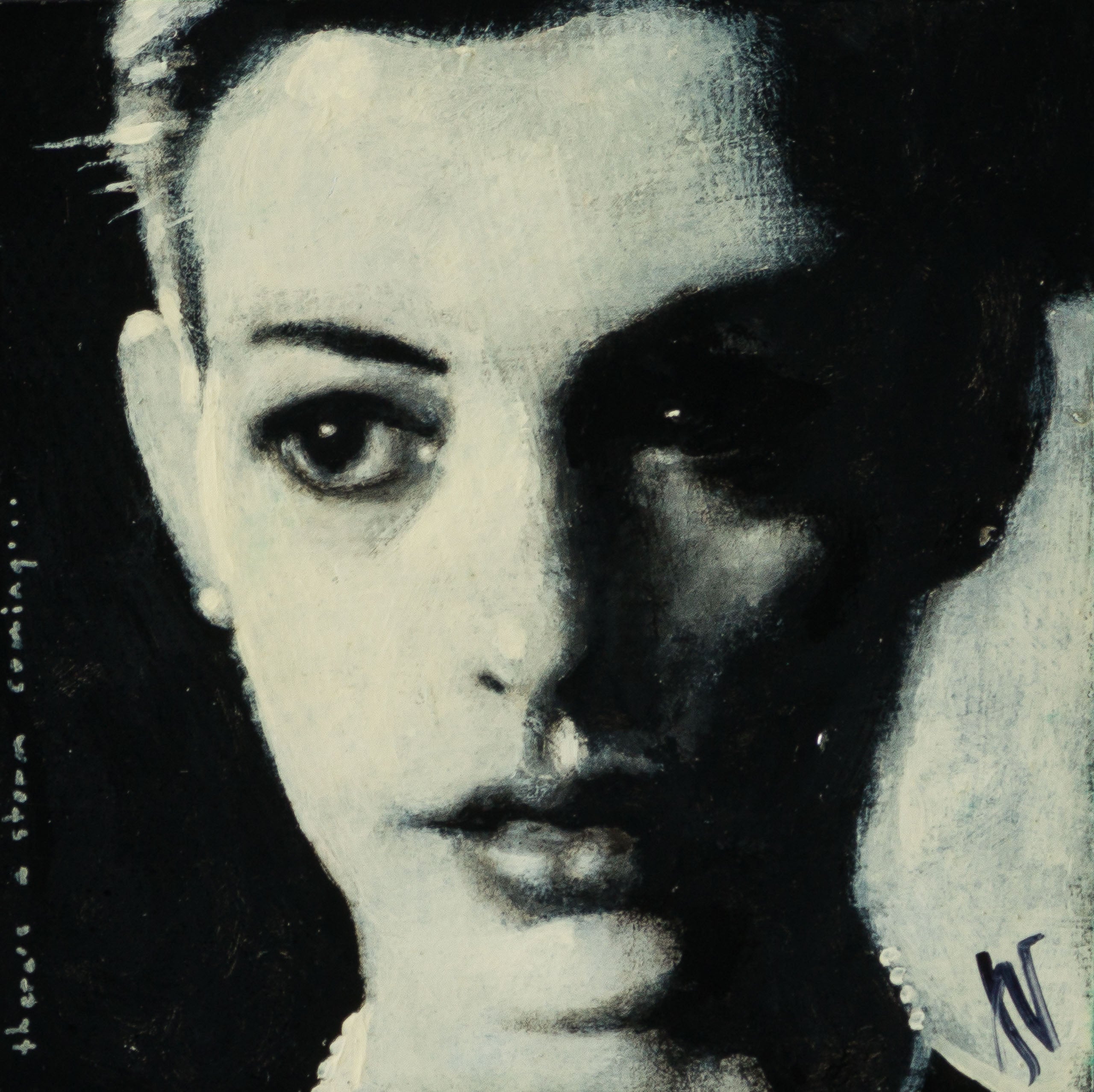 Often depicting celebrities or the Peaky Blinders gang, his haunting portraits are perfect for both traditional and contemporary spaces. Perplexing, and melancholic, Jon's work is created from the heart, capturing expressions, moods and feelings. All the individual portraits are from people who have interested or inspired the artist in this case the award-winning American actress Anne Hathaway.