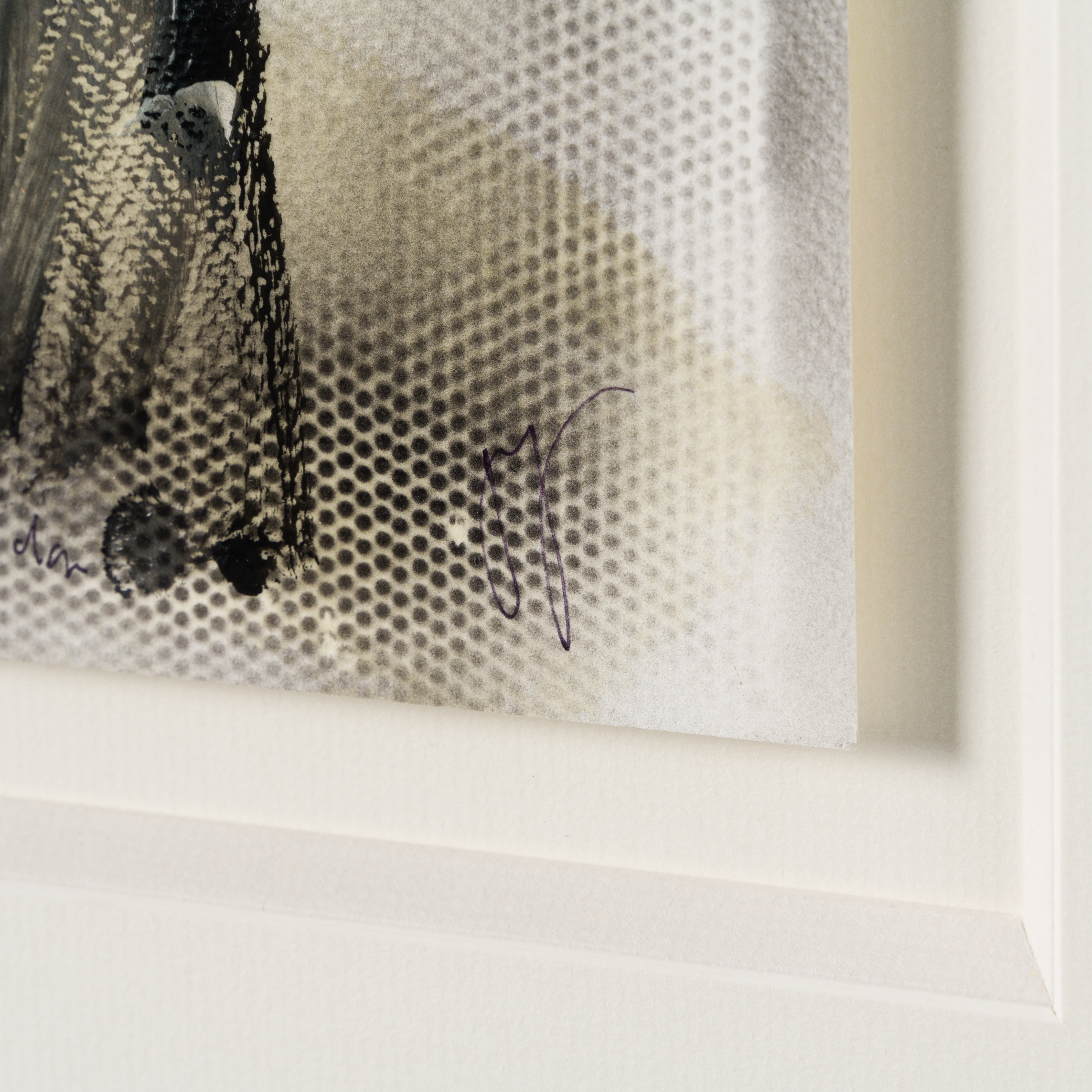 Deep swathes of black paint are skilfully blended and contrasted with white accents to create detailed and moving masterpieces. Bespoke framed and mounted in textured black radiata pine, this original painting will add a dark and sultry touch to any space while honouring a key aspect of British history.