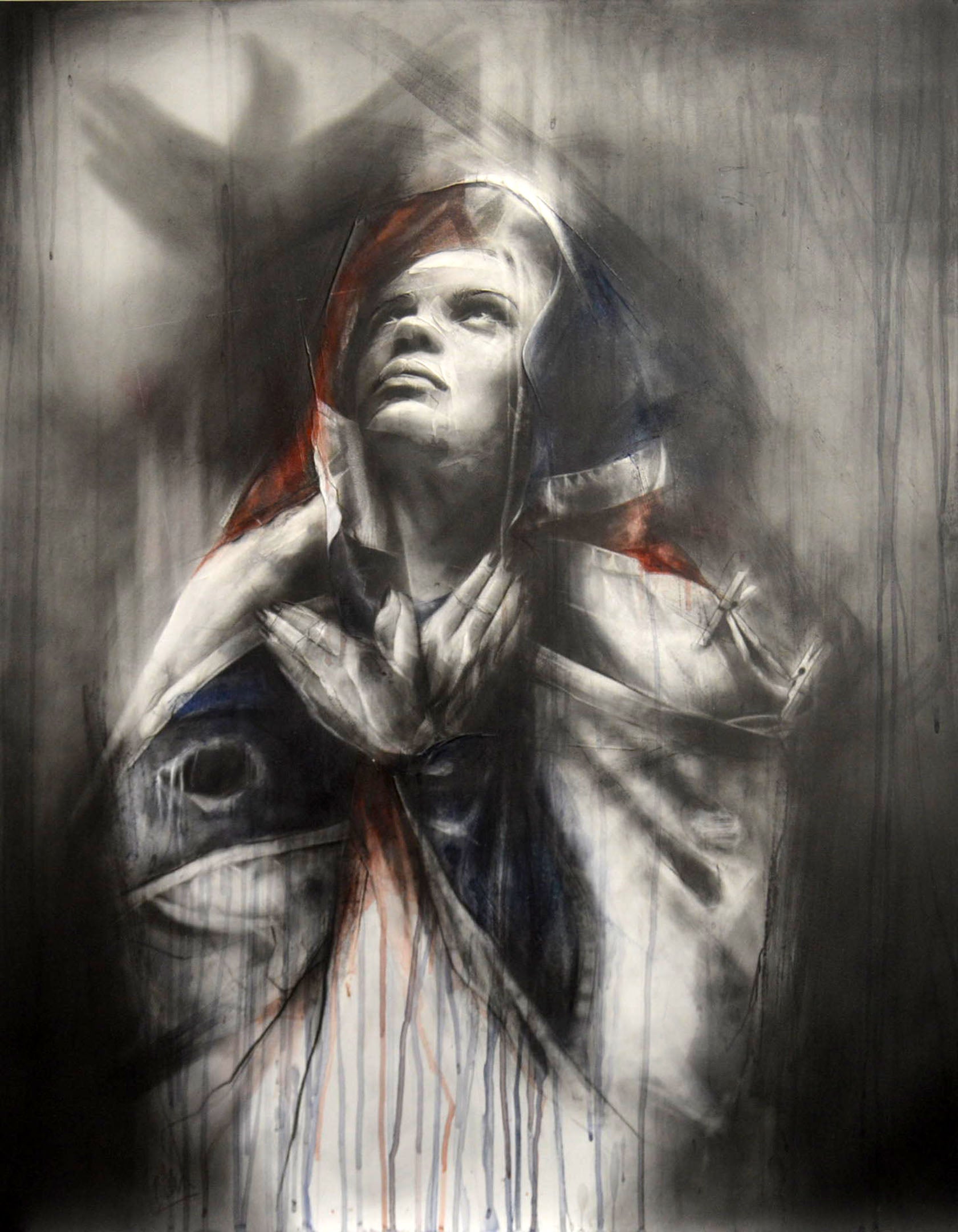 Keith's works are created with graphite, oil, acrylic and pastel and explore themes of family values, trust, love and friendship. Keith has added subtle earth tones to his usual monochromatic palette, adding: “They are a touch surreal in a dark and beautiful way.”