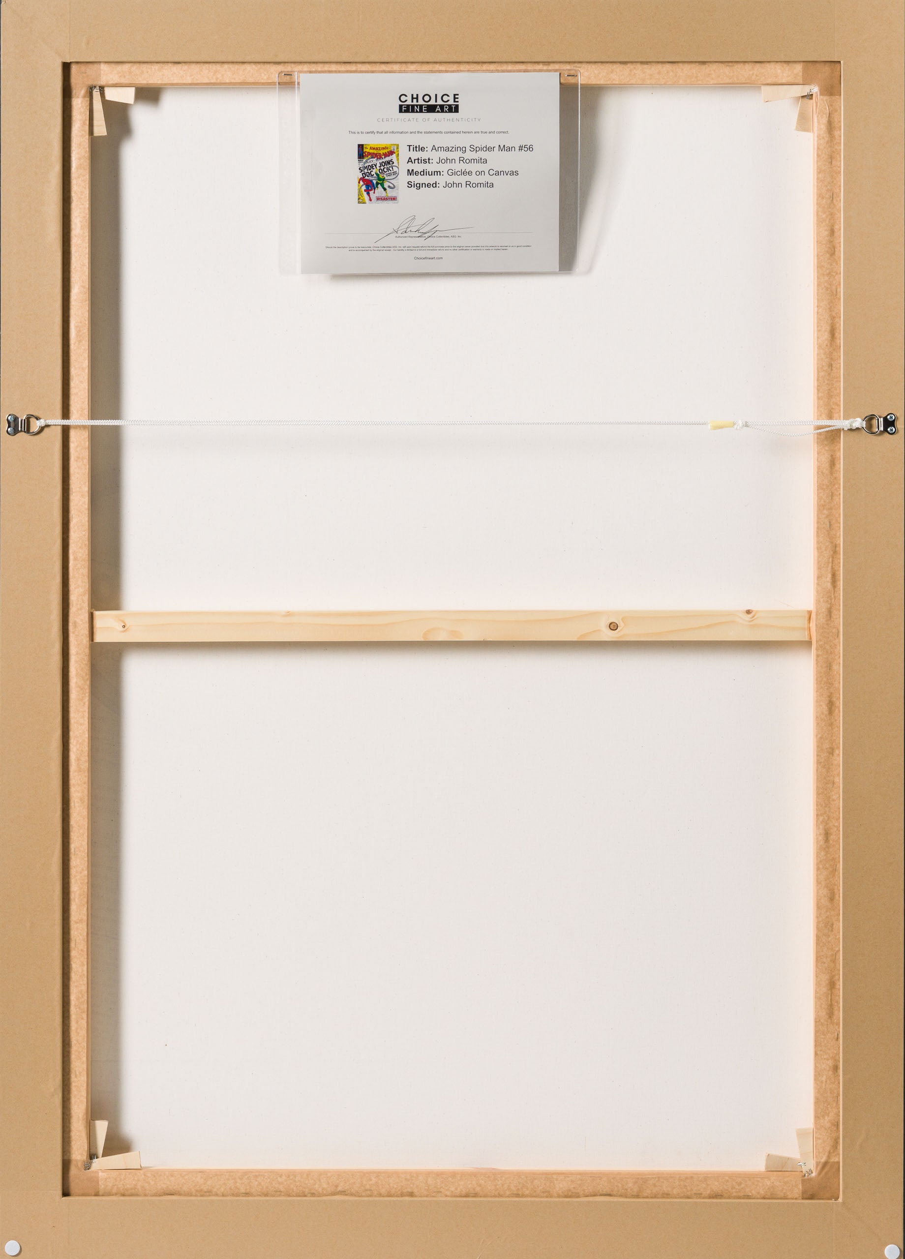 Published in 1968 and written by Marvel legend Stan Lee, “The Amazing Spider-Man #56” is a Marvel Superhero unique print of the issue’s cover, hand-signed by John Romita Sr. This issue marks the first appearance of Captain George Stacy, and the conflict double life Peter Parker was living.