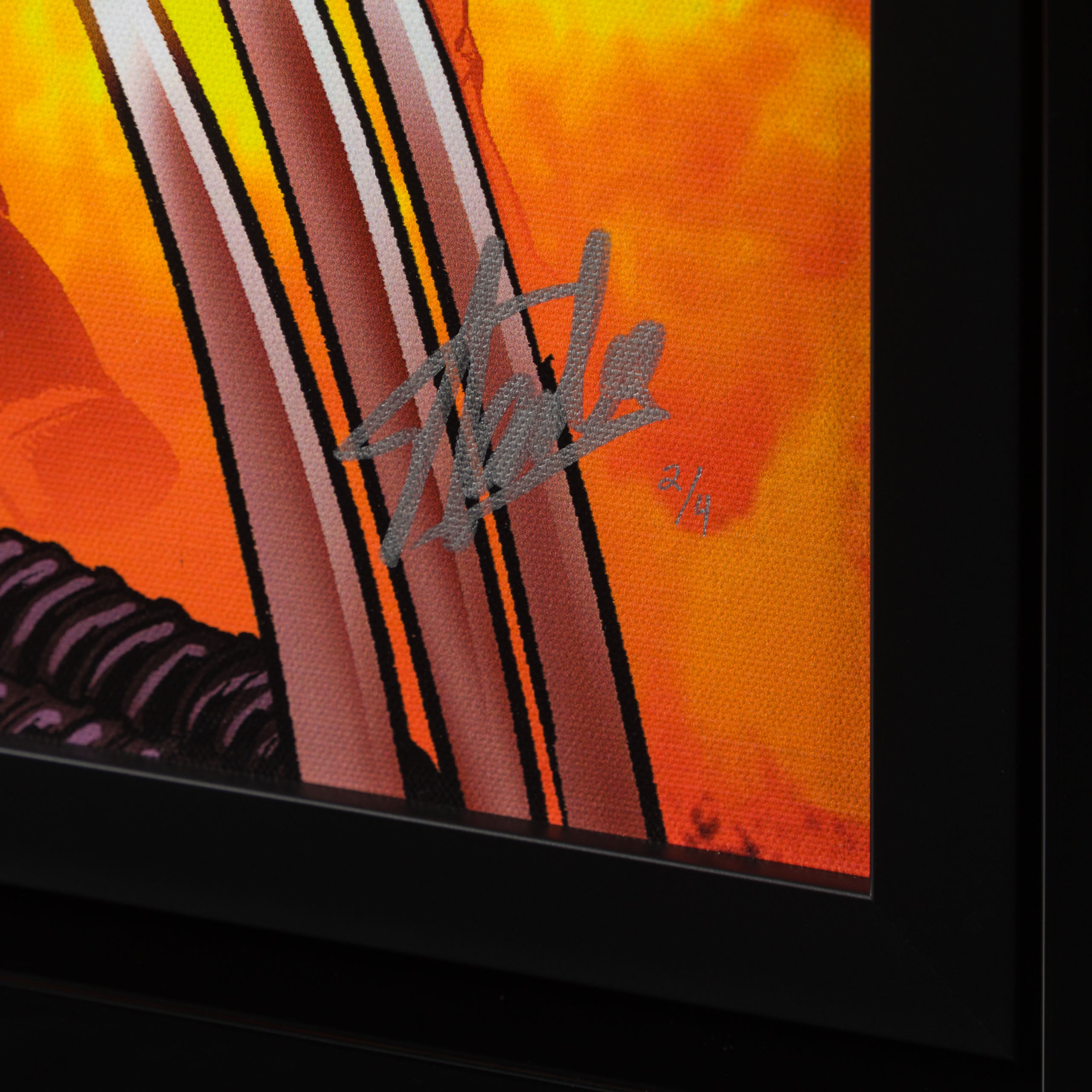 Presented in a modern black frame, this piece is a Deluxe edition of four hand-signed by Stan Lee.