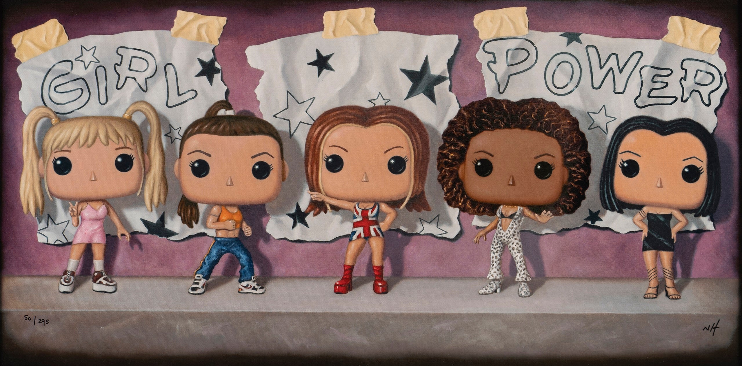 Taking inspiration for this piece from the Spice Girls, Nigel says: “This painting required a great deal of research as there are no Funko Pop figures of the Spice Girls. I wanted to have a representative from each decade for this collection and when I thought of the 90s, I instantly thought of the Spice Girls. It was particularly important to get the right pose for each character.”