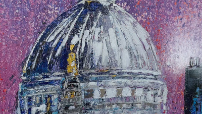 As a focal point in this piece, St. Paul's is one of the most iconic buildings in the dynamic capital of London. This incredible mixed media limited edition is simultaneously full of colour and darkness. Using sharp, small, and colourful accents, the artist has brought London to life, capturing the majestic city of London illuminated by glowing lights in a myriad of colours.
