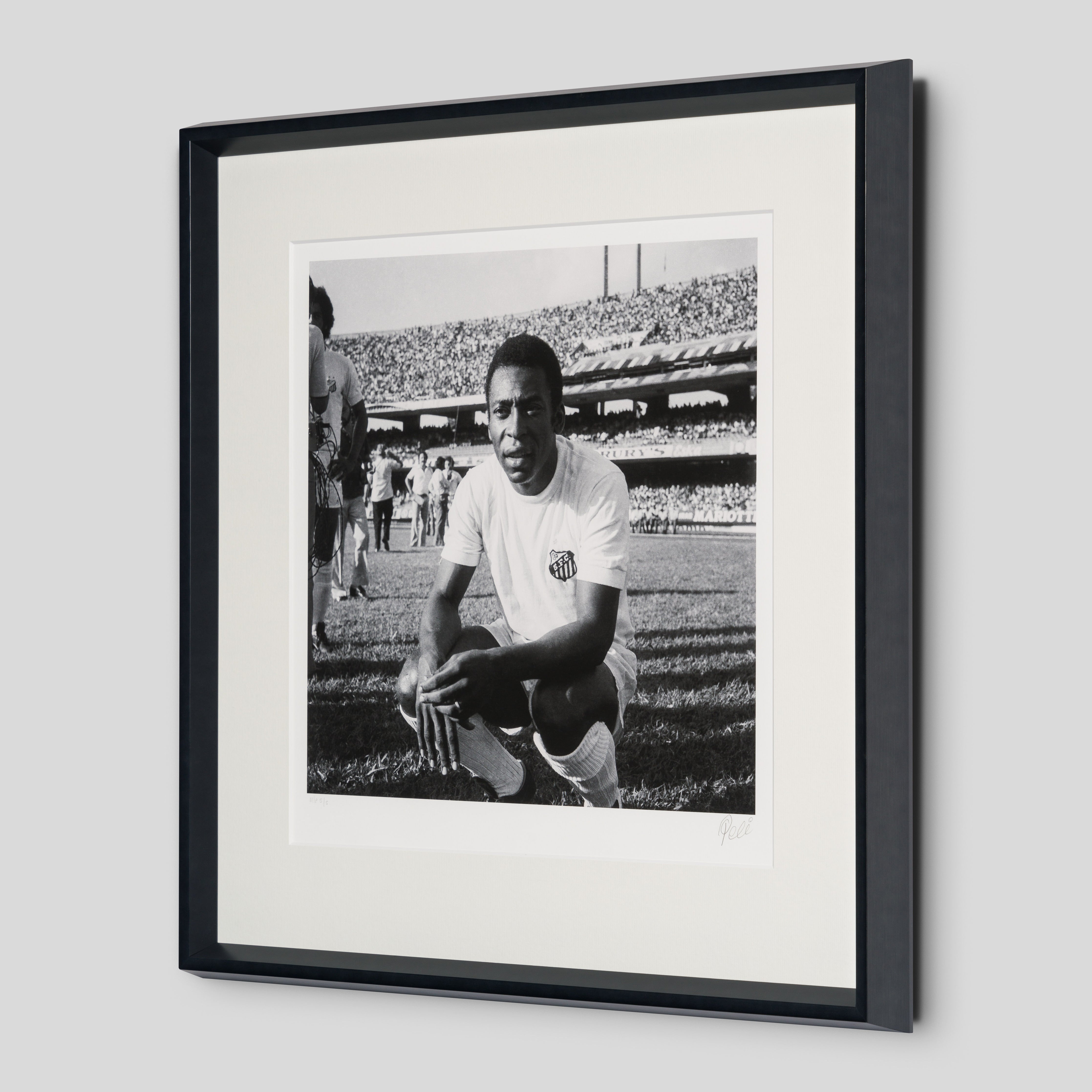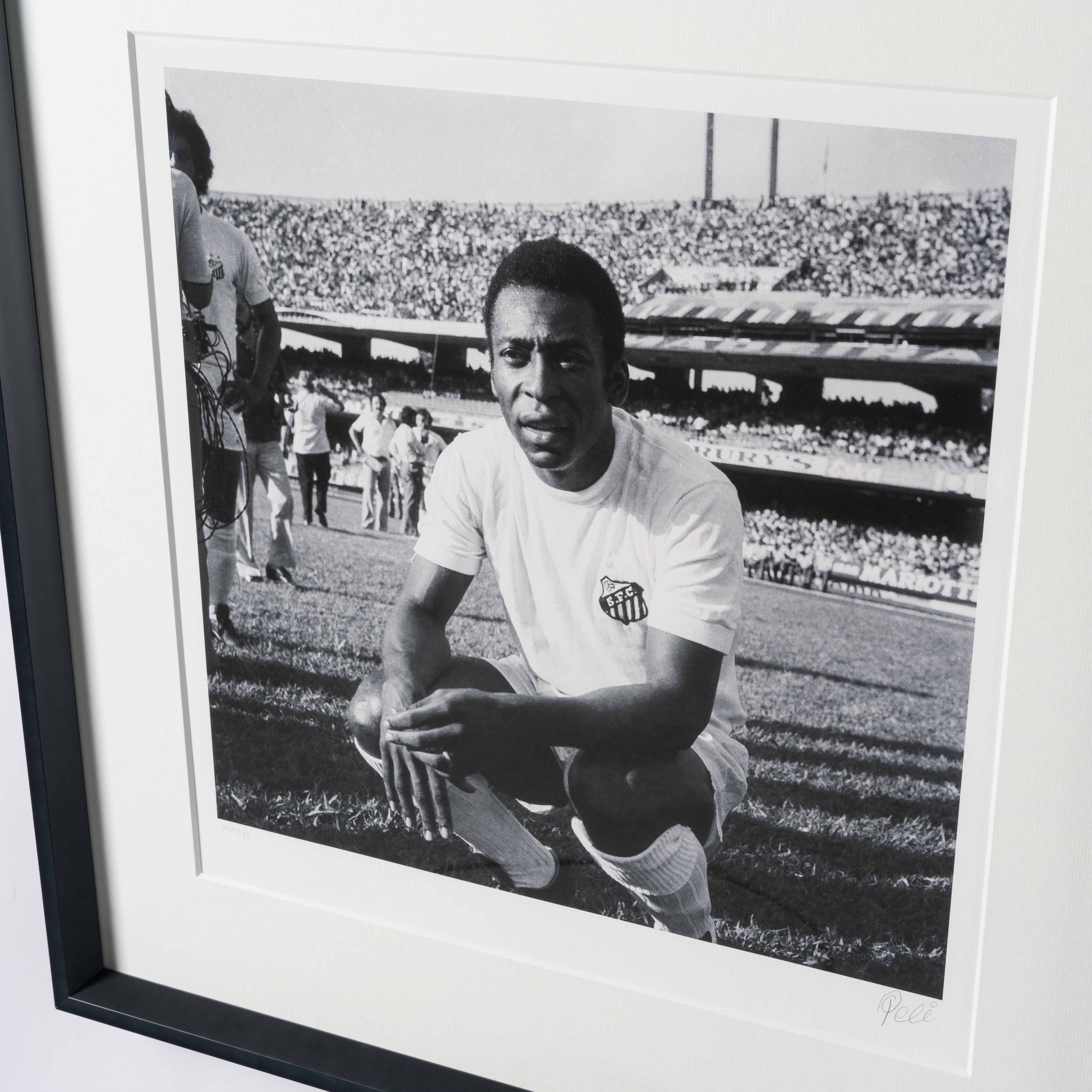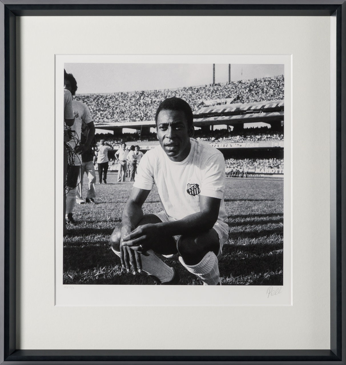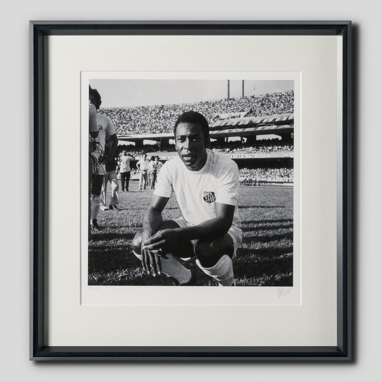 Photographed by José Dias Herrera – a Brazilian photographer who marked his legacy through sports history and who often shot Pelé, recording the biggest moments in history of football – “Santos” is a Pelé hand-signed limited edition Giclée on paper artwork depicting world-famous footballer.