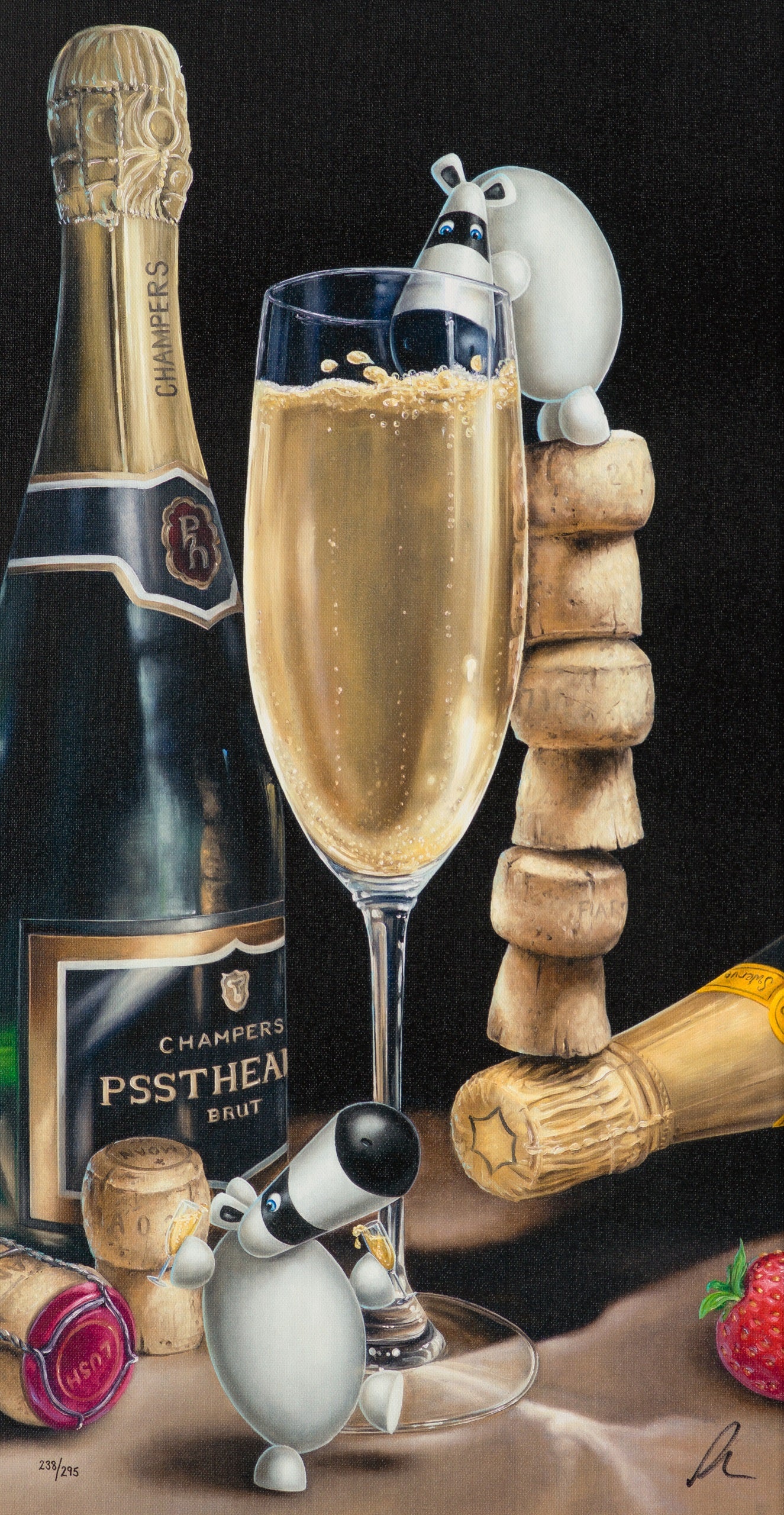 In the wise words of F. Scott Fitzergald, "Too much of anything is bad, but too much champagne is just right." Likewise, Peter and Jayne Smith have perfectly personified our love for a glass or two of bubbly in this hand-varnished canvas on board by Peter and Jayne Smith.