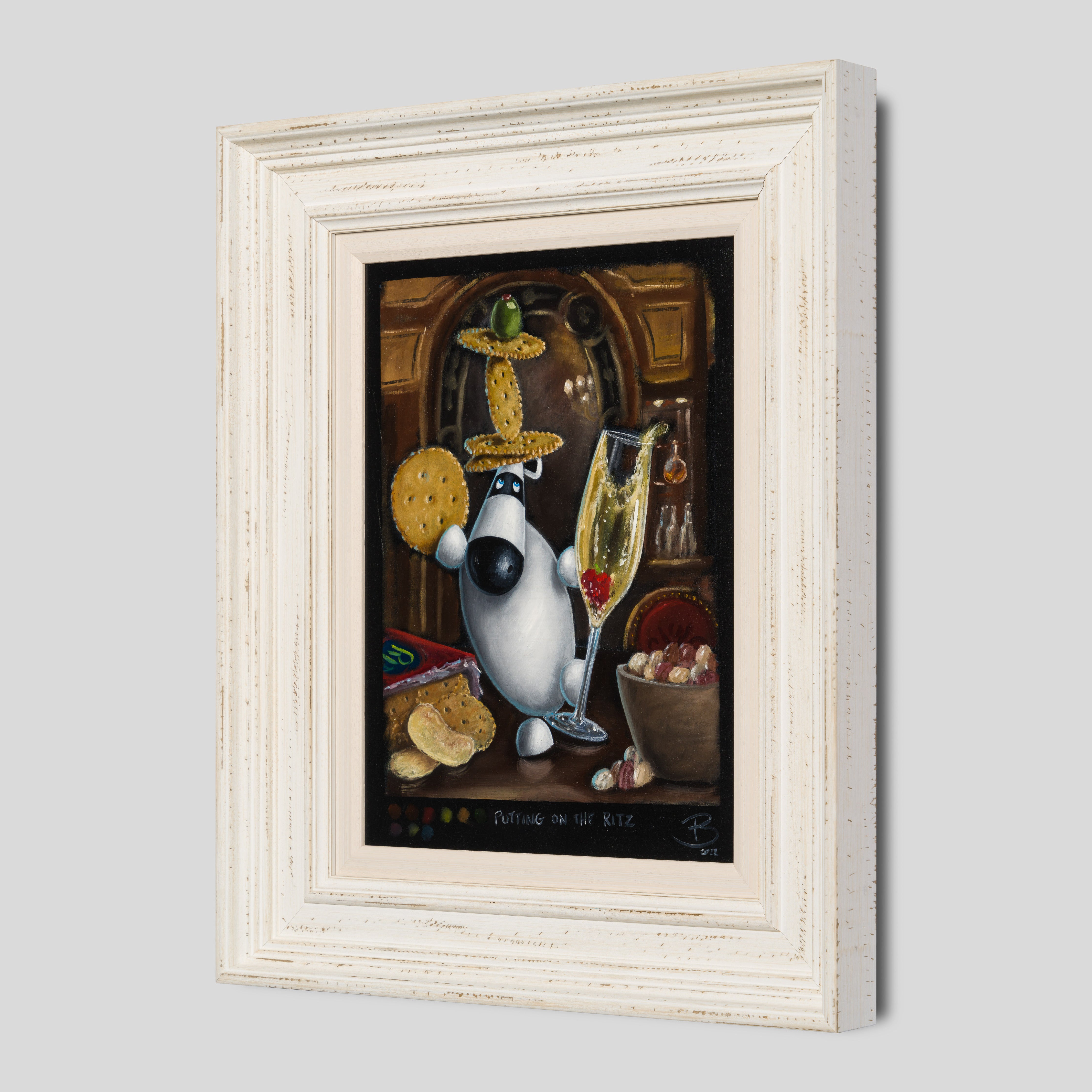 Bright and vivid colours pop out of a dark yet detailed background in this hilarious limited edition artwork by Peter and Jayne Smith. Part of their 2022 collection Ticklish Allsorts, here the artists playfully mix provocative themes with imagery of delectable delights and crafty cocktails to create a beautifully bonkers masterpiece.