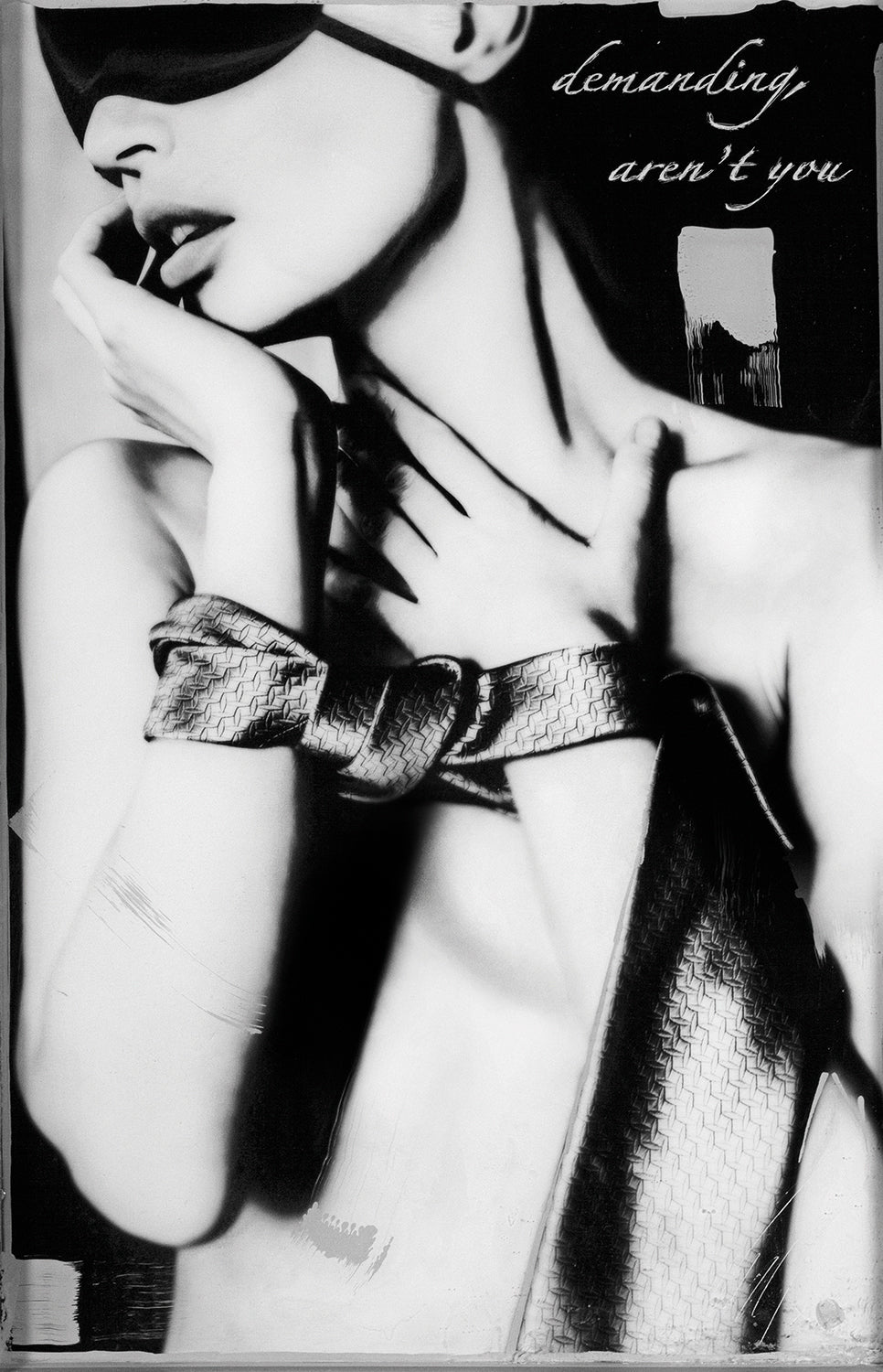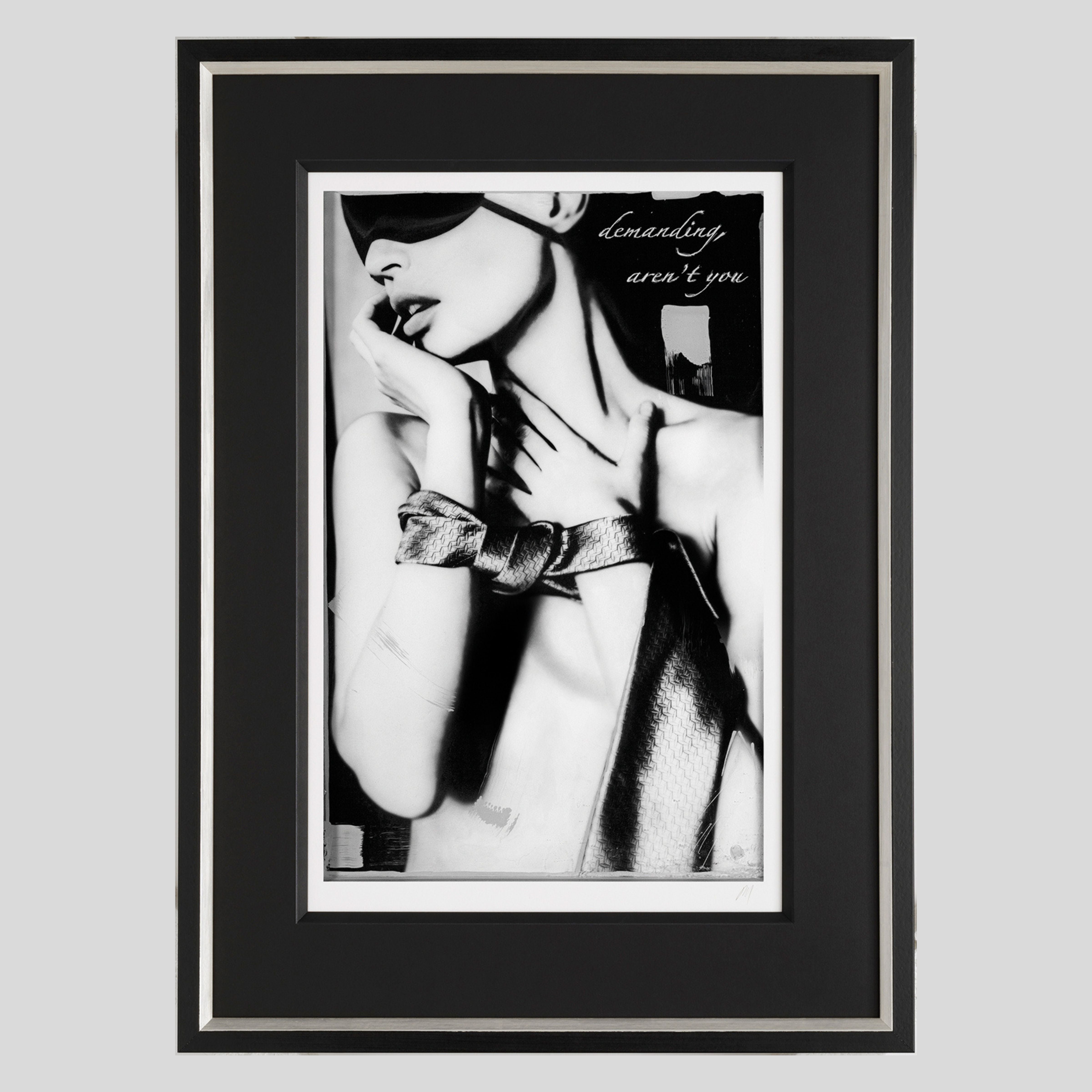 This delicately seductive collection represents the creative meeting of minds between Raphael Mazzucco and E.L. James. Beautifully presented in a monochromatic mixed media composition, the four images combine elegant photography overlaid with elements of collage and iconic phrases from the books.