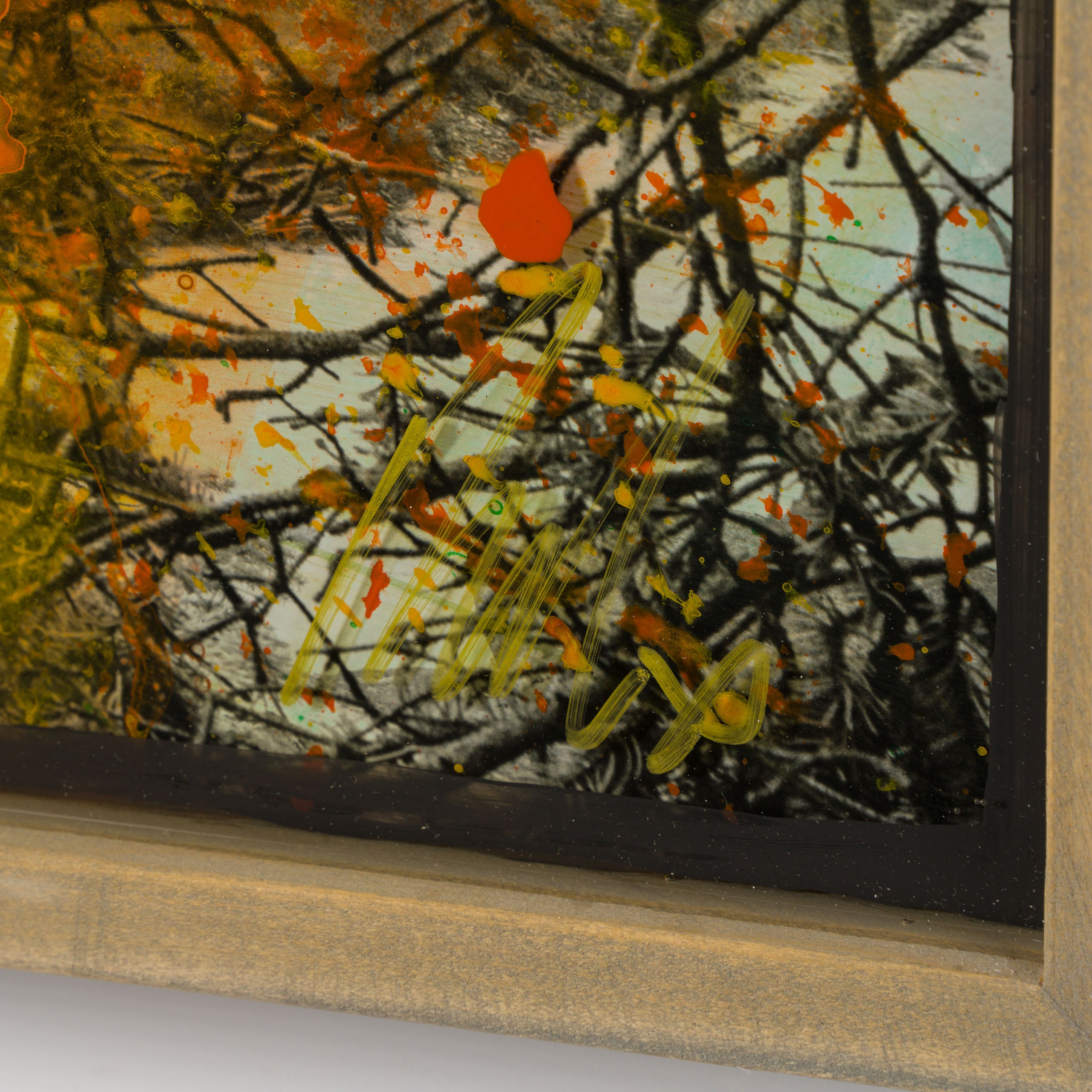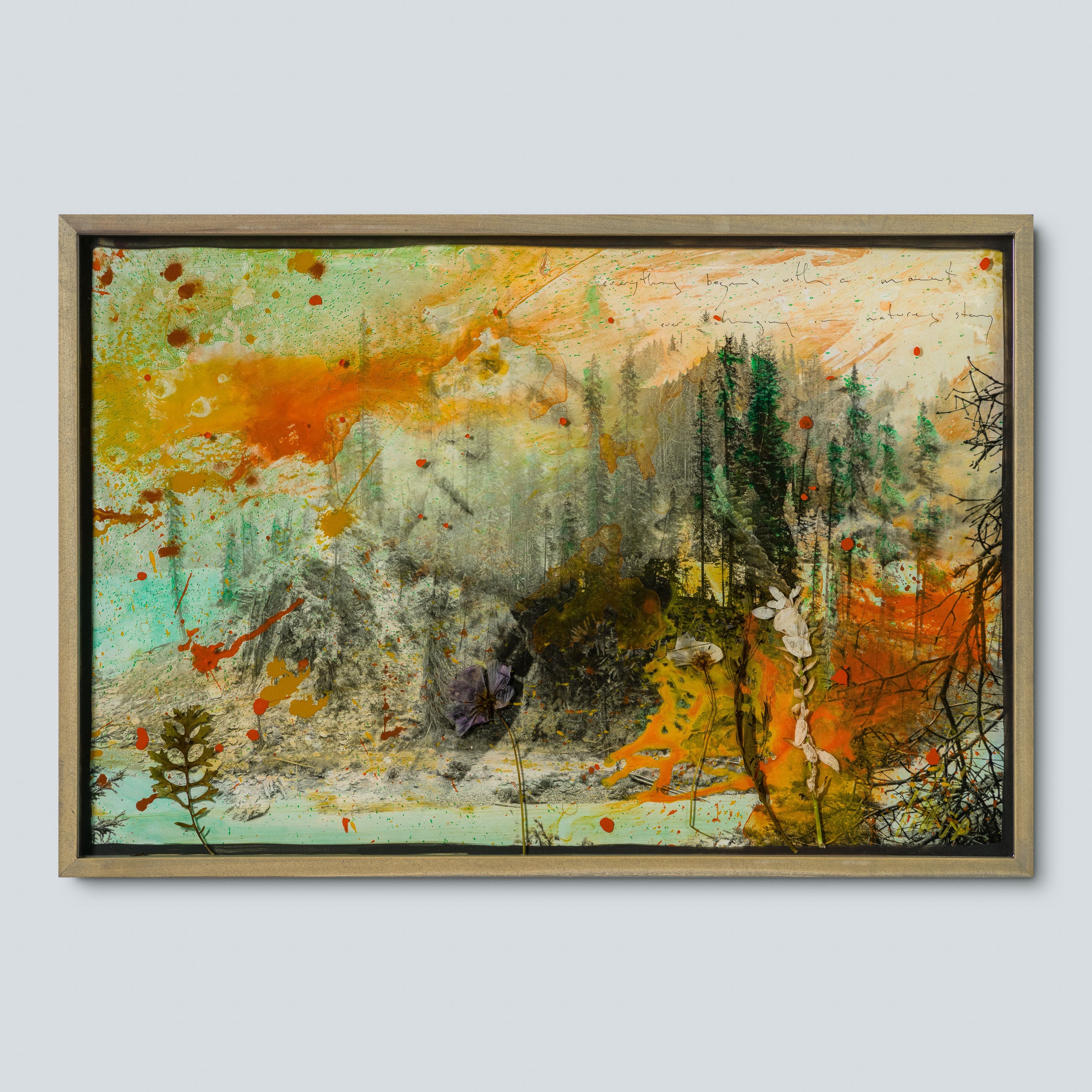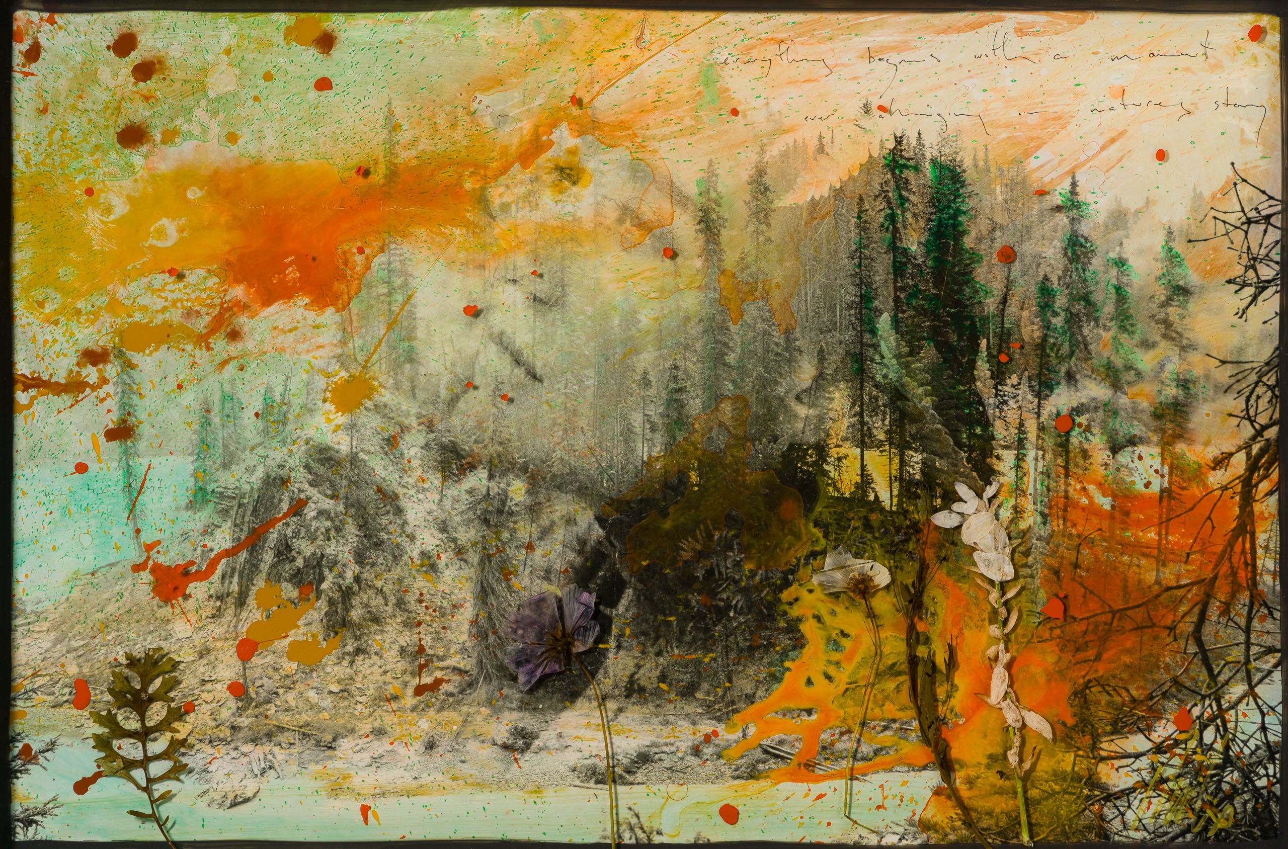 His new Motherland artworks are visually captivating and emotionally evocative pieces that beg further inspection. Interspersed throughout the collection are handwritten notes featuring the prose and poetry of Margaret Atwood, renowned Canadian novelist and poet. Atwood’s prose famously draws inspiration from the Canadian landscape, vividly describing the vast wilderness and rugged coastlines, capturing the essence of the country's natural beauty in her works. Her words encased throughout the layers of Mazzucco’s originals embellish an intimate and arresting tribute to the raw and wild terrain of his homeland.