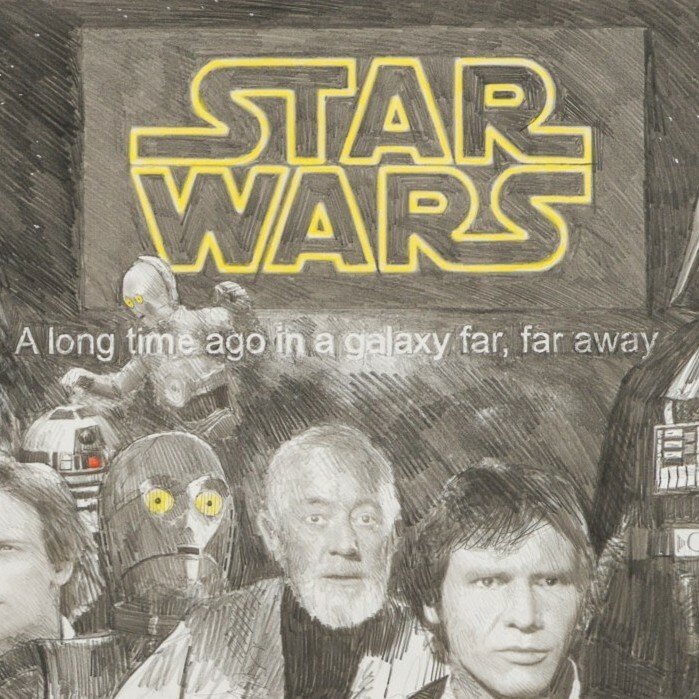 Castle Fine Art is proud to present From the Adventures of Luke Starkiller, a world-exclusive collection of original art by the prestigious pencil artist, Robert Bailey. Alongside original script pages from the 1977’s ‘Star Wars: Episode IV - A New Hope’ film, Bailey has exquisitely illustrated scenes in his famously detailed pencil artworks.