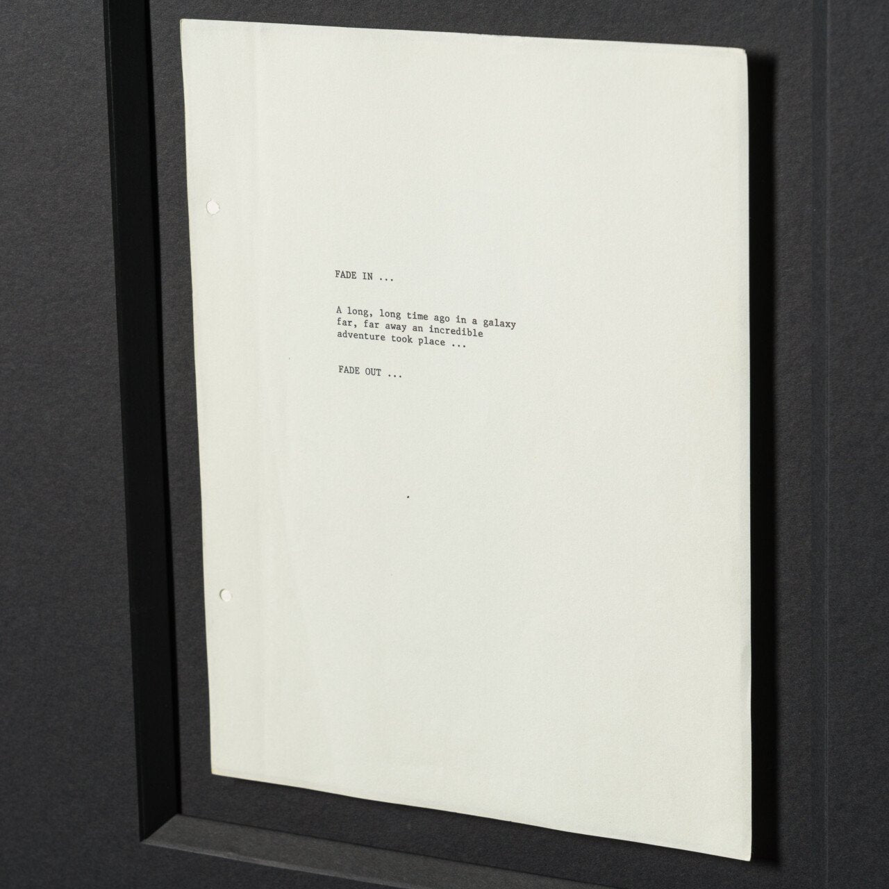 His 145-page draft script, credited to Lucas, is dated January 1, 1976. The visibly worn title page has Daniels' name stamped on it and features the title “Star Wars”.