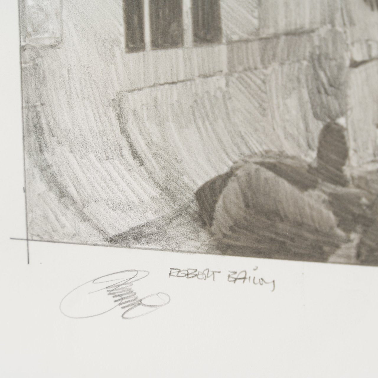 The artwork is hand-signed by Robert Bailey. Alongside Bailey’s signature, every piece has two different coloured stamps: a red stamp for the copyrights of Lucasfilm and a blue stamp for mark Bailey as a Lucasfilm endorsed artist.
