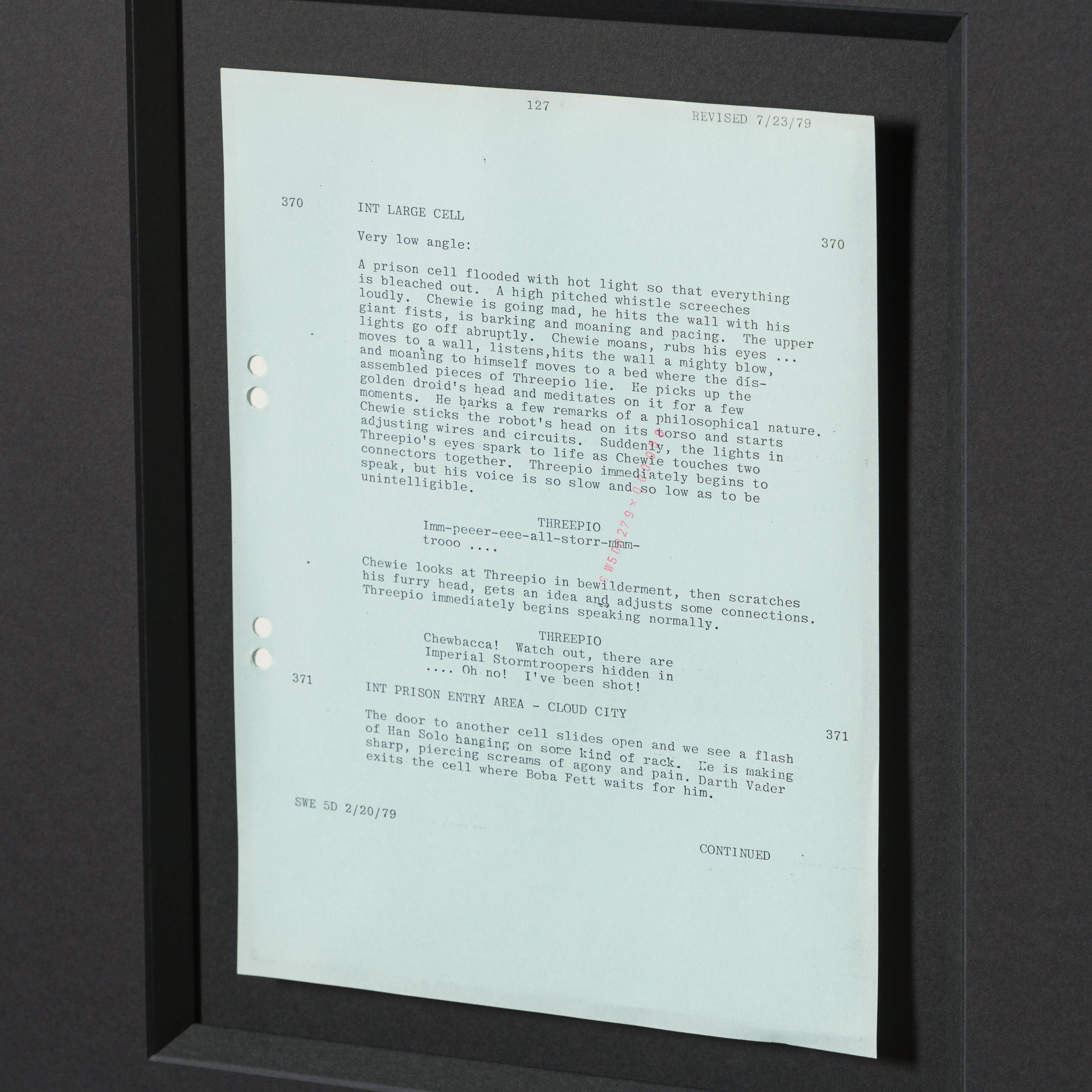 The Empire Strikes Back: Part Two collection is build-up of 89 pieces part of The Empire Strikes Back rare script, originally belonging to Michael Ford. Known for his Oscar-winning work on the Titanic (1997) and Raiders of the lost Ark (1981), Ford was the Art director for The Empire Strikes Back with which he received an Academy Award nomination.
