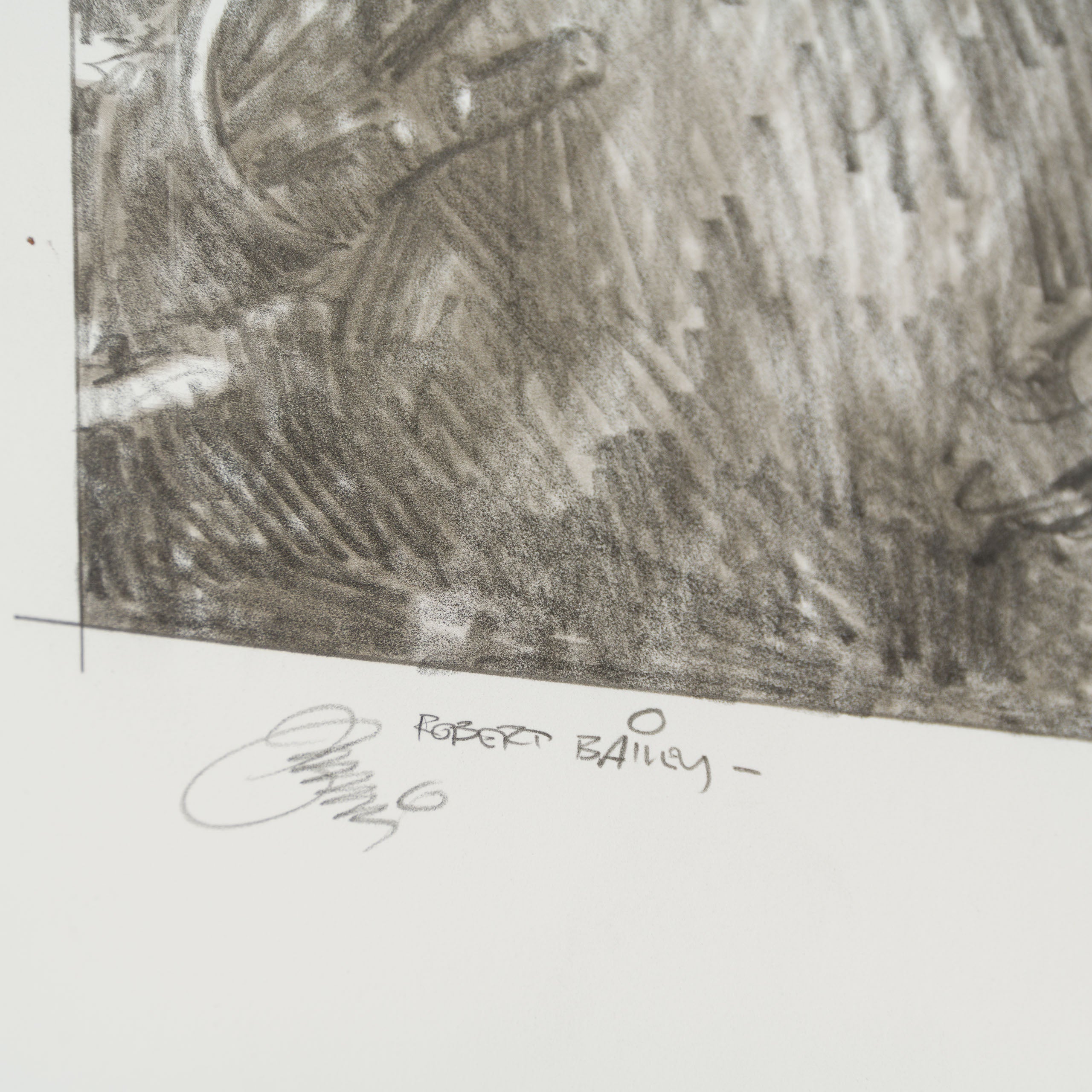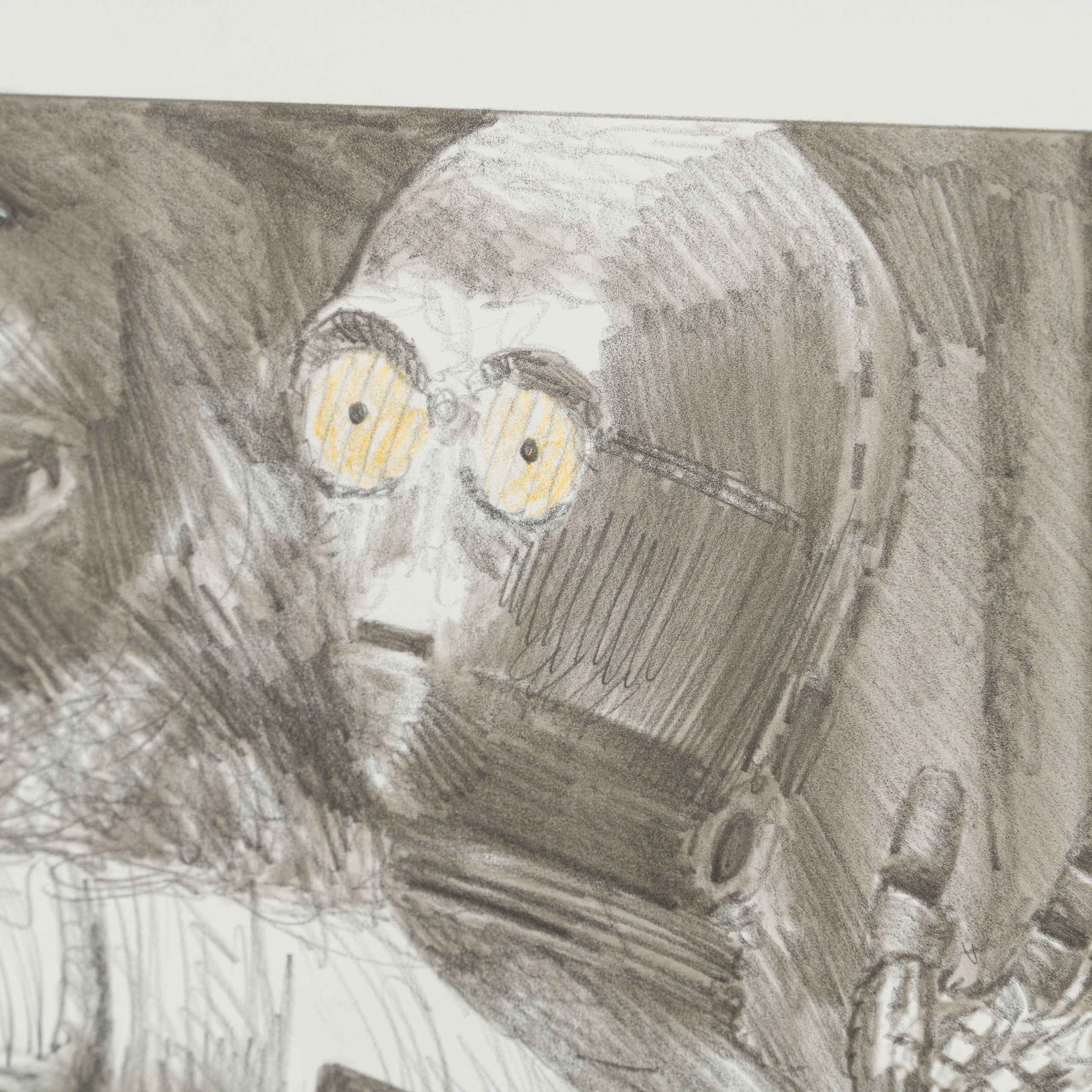 George Lucas, Star Wars creator, first noticed Bailey’s incredible talent for using pencil on paper and invited the artist to work on Star Wars Visions – which saw 30 artists create their own interpretations of characters and scenes. As a licensed Marvel artist and Lucasfilm endorsed artist, Robert captures the iconic scenes through different tones of delicate graphite and states that “Only by the practice can the dexterity of fine pencil work be kept up”. Robert Bailey brings this historic medium into the contemporary consciousness; harnessing its innate monochromatic quality to create dark, focused, and detailed artworks. “For me, this meant more electrifying than I can describe, creating another series of work to be matched with script pages. To combine such pages with pencil drawings is surely a third dimension to bringing the dialogue and images to life! I'm sure that this collection, like the movie, will stand the test of time.”