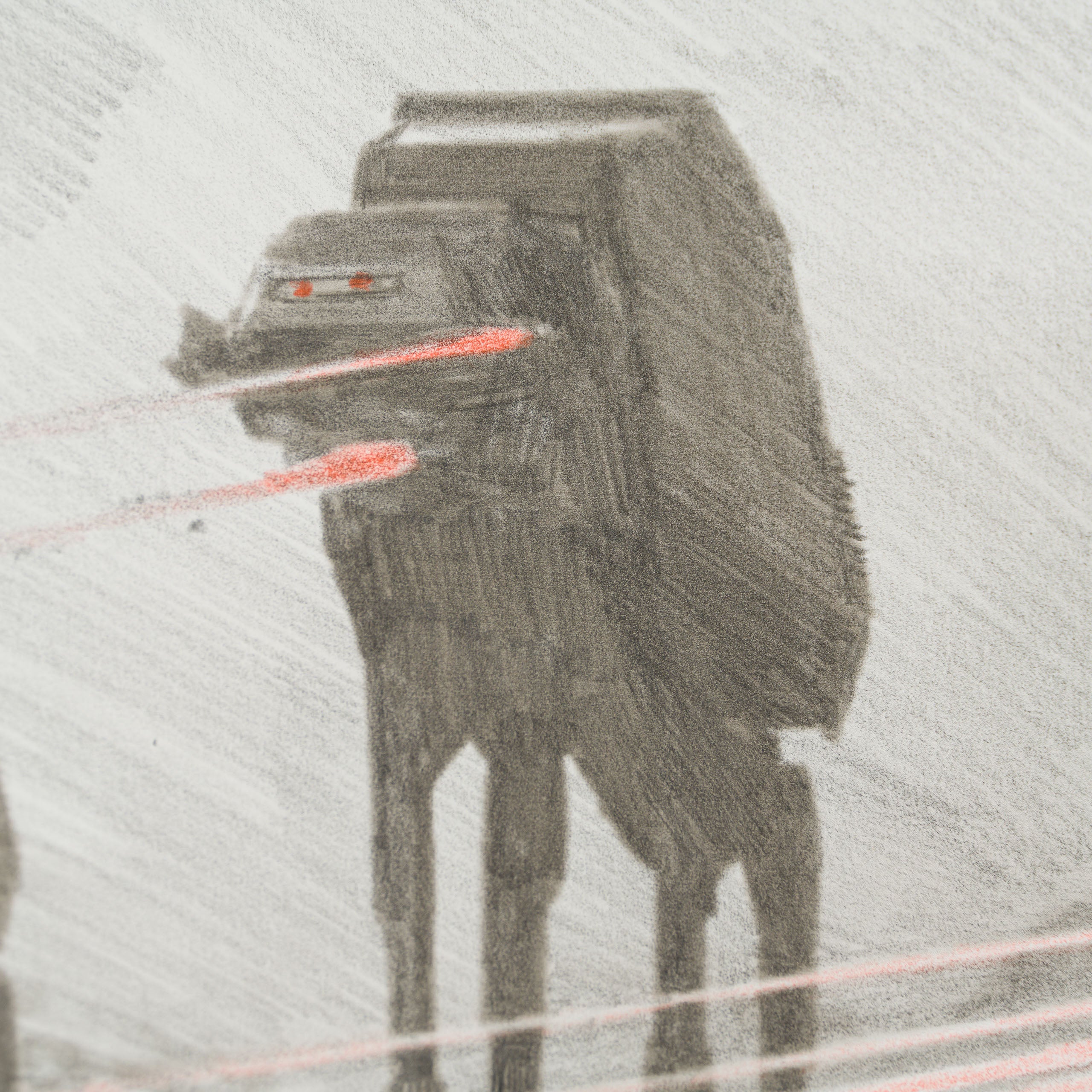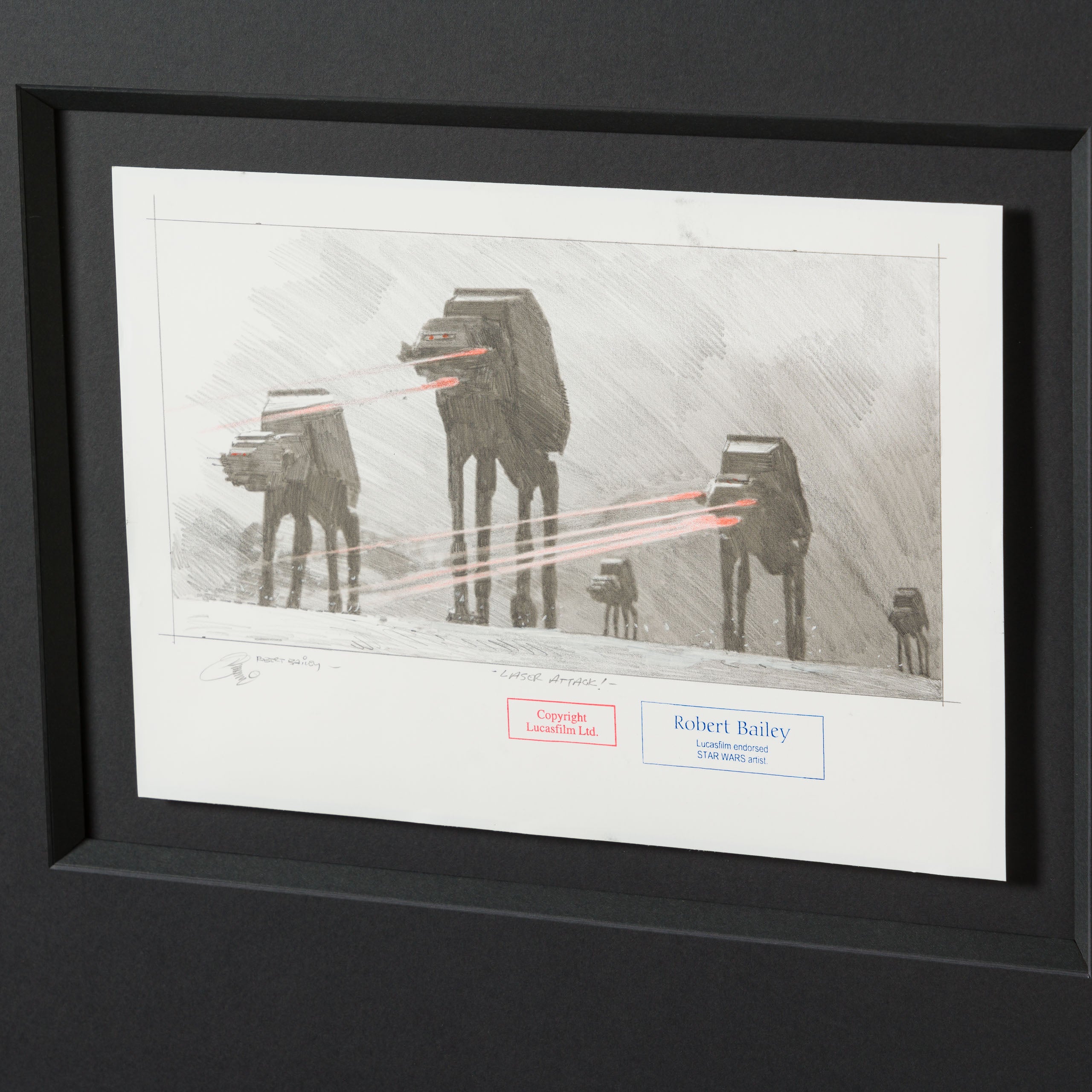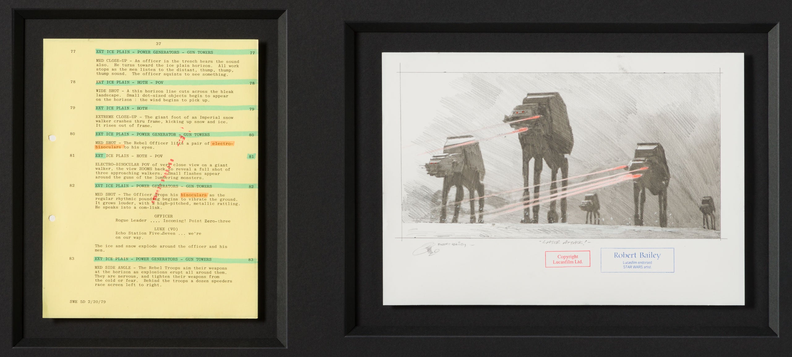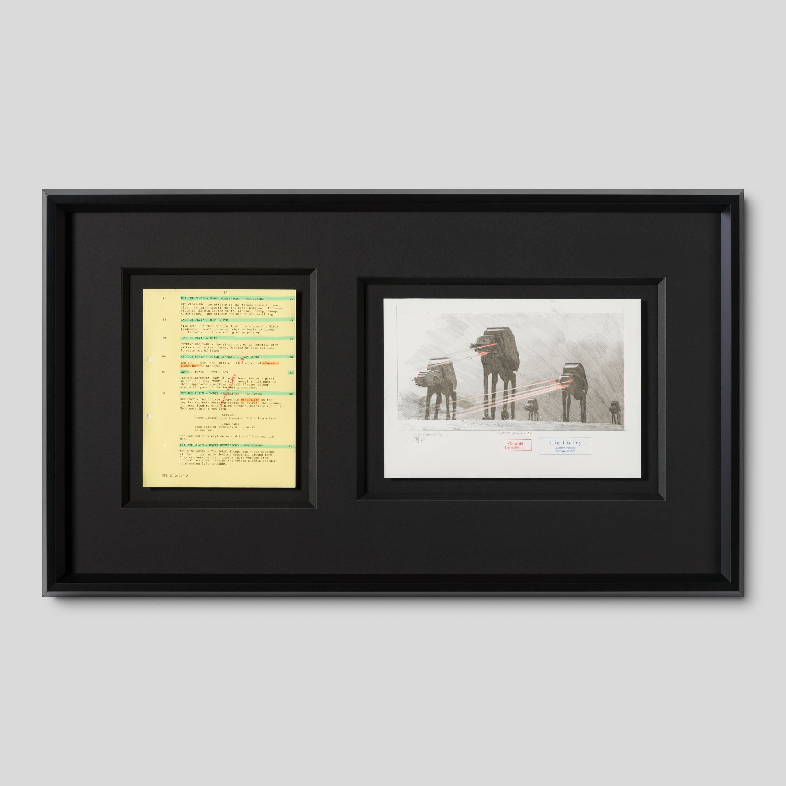 Alongside a script page, Bailey captures the essence of the iconic scene and allows collectors to own a real piece of Star Wars history. “Laser Attack” features an unforgettable drawing with page number 37 of the script.