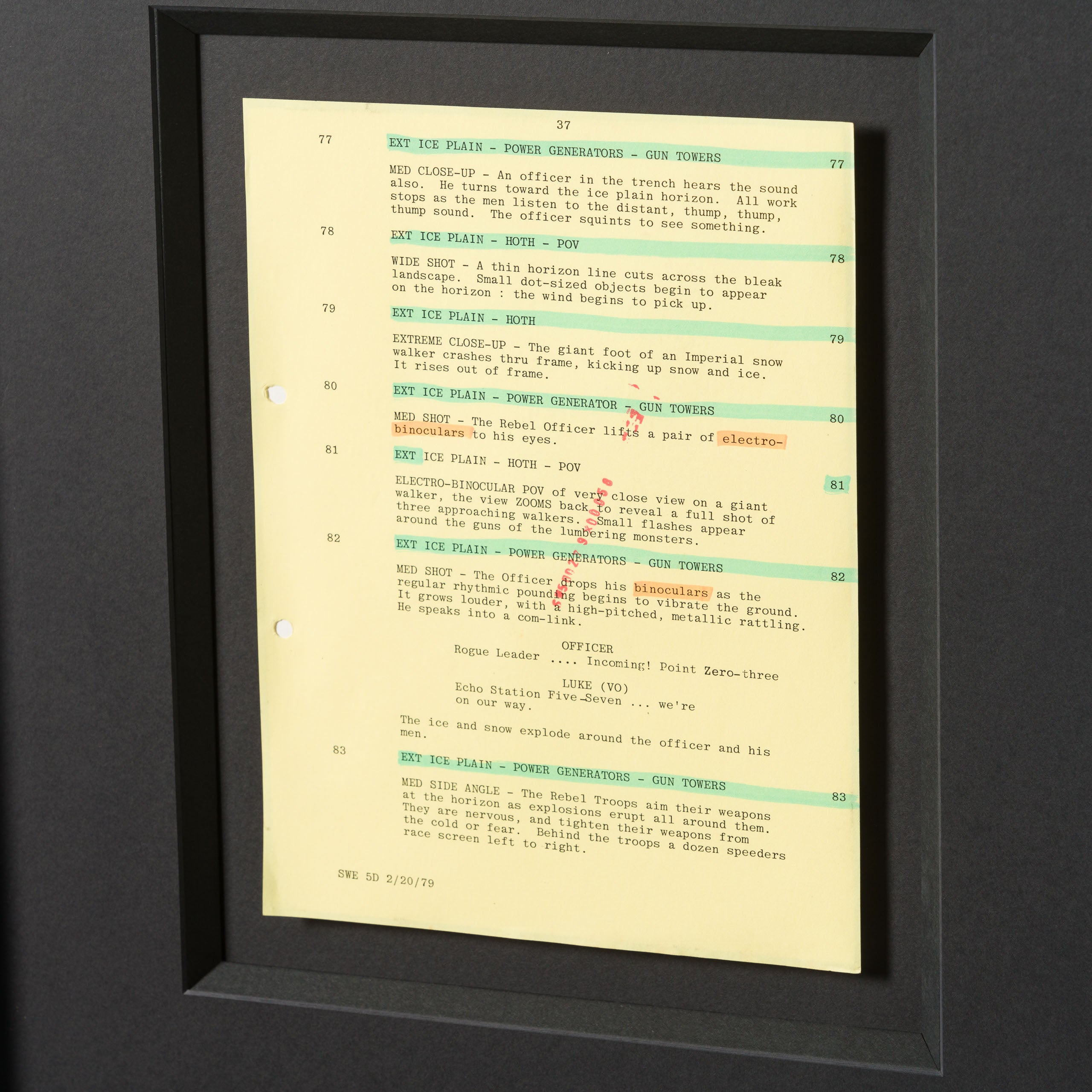 The Empire Strikes Back: Part One collection is build-up of 89 pieces part of The Empire Strikes Back rare script, originally belonging to Michael Ford. Known for his Oscar-winning work on the Titanic (1997) and Raiders of the lost Ark (1981), Ford was the Art director for The Empire Strikes Back with which he received an Academy Award nomination.