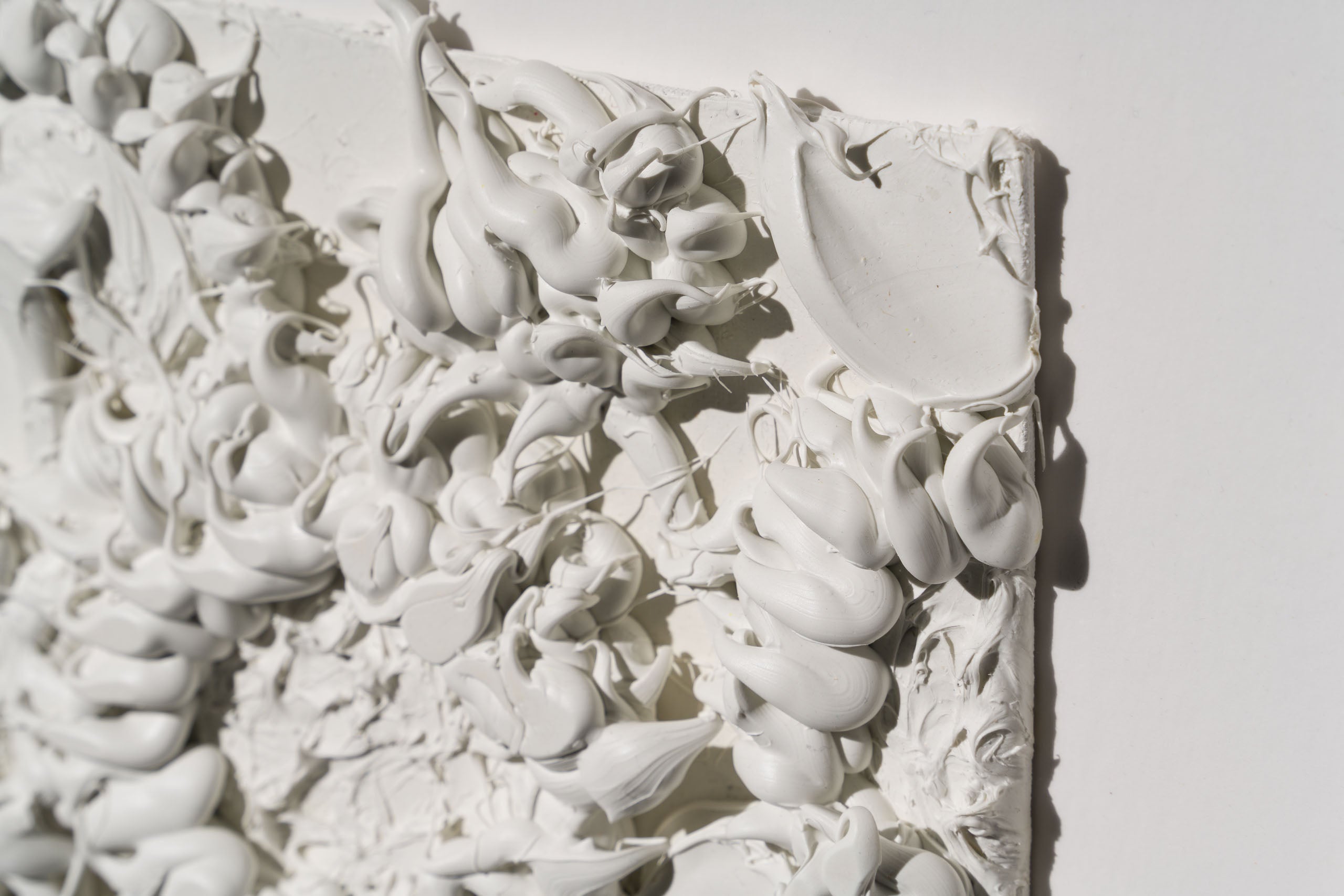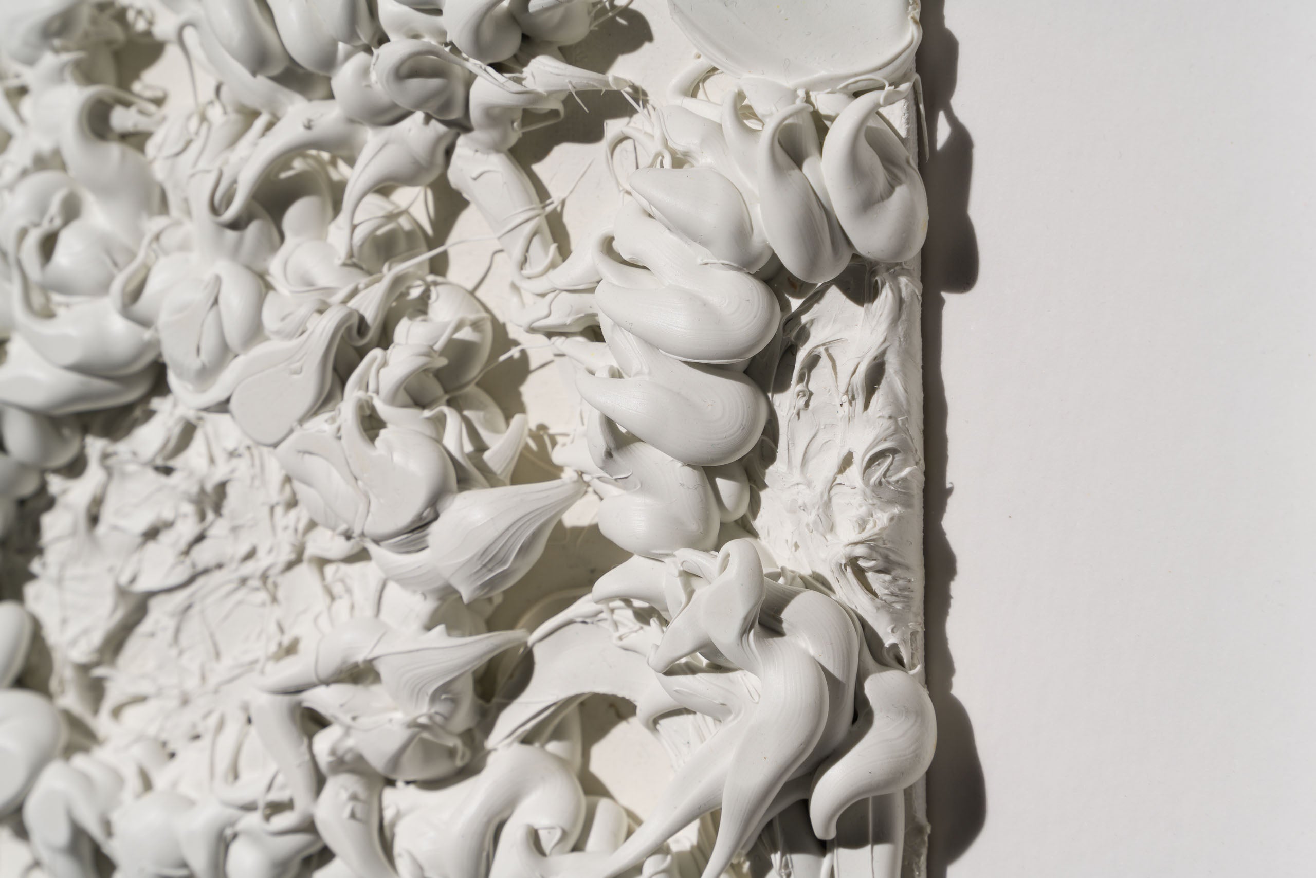 “It’s my love of painting and observing nature that has held me together all this time and to combine it with the rawness and directness of abstract impressionism, in all white, feels like I’ve come full circle.”