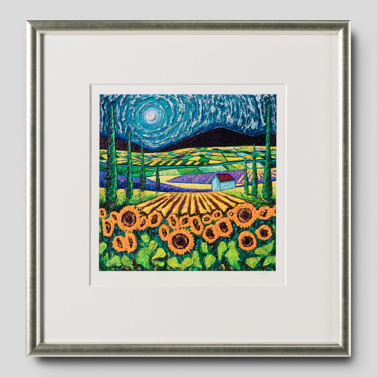 In a landmark new collection for Castle Fine Art, Scarlett Raven launches her new Lasting Impressions series. Full of love for our natural surroundings, and inspired by her admiration of Vincent Van Gogh and David Hockney, Scarlett’s new pieces are her most passionate yet. The two artworks 'Sunset on Poppy Field' and 'Sunflowers Amongst Cypress Trees' are available as a giclée on paper as well as boxed canvas.