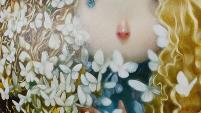 This technique complements the softer features of Shazia’s work, particularly her signature butterflies which surround Verma. The butterfly figure originated by pure chance when Shazia discovered a live butterfly on one of her early paintings. She loved the charm it added to the piece, so has continued to include them in her work ever since.